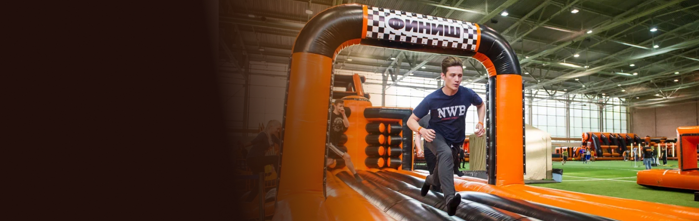 Вызов принят – комплекс мягко-надувных аттракционов и тимбилдинга в цветах Победы. Первая презентация клиентам и партнёром.