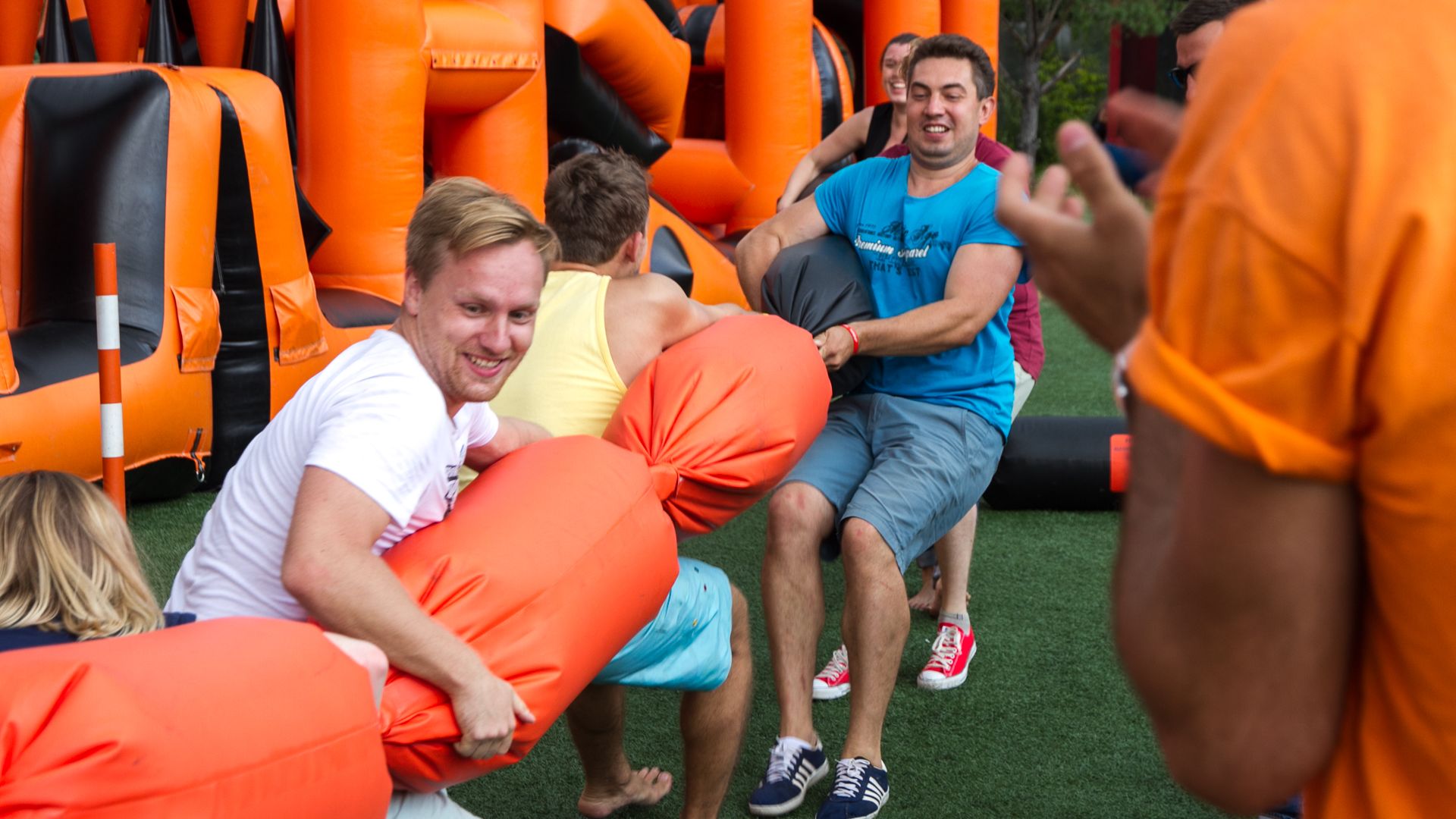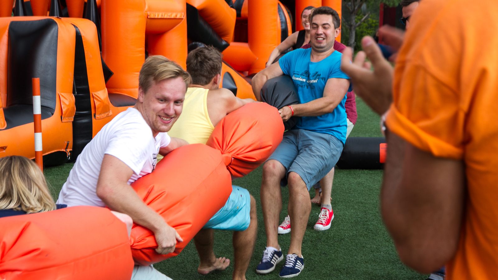 А для тех, кто хочет крутой комплект, но подешевле – в наличие есть надувные чёрно-оранжевые препятствия и их цветные аналоги.