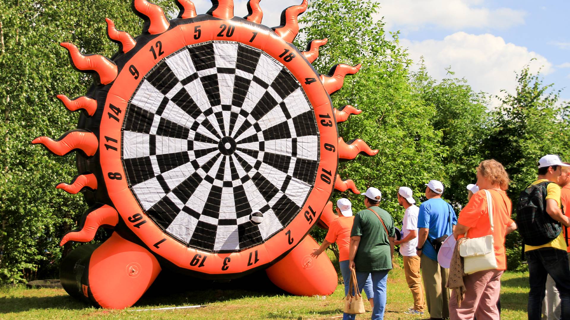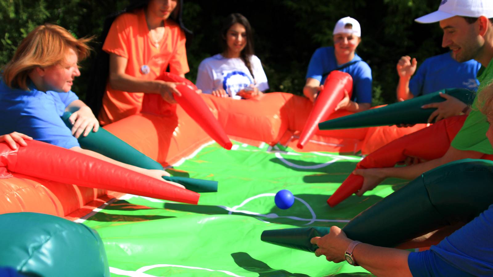 А для тех, кто хочет крутой комплект, но подешевле – в наличие есть надувные чёрно-оранжевые препятствия и их цветные аналоги.