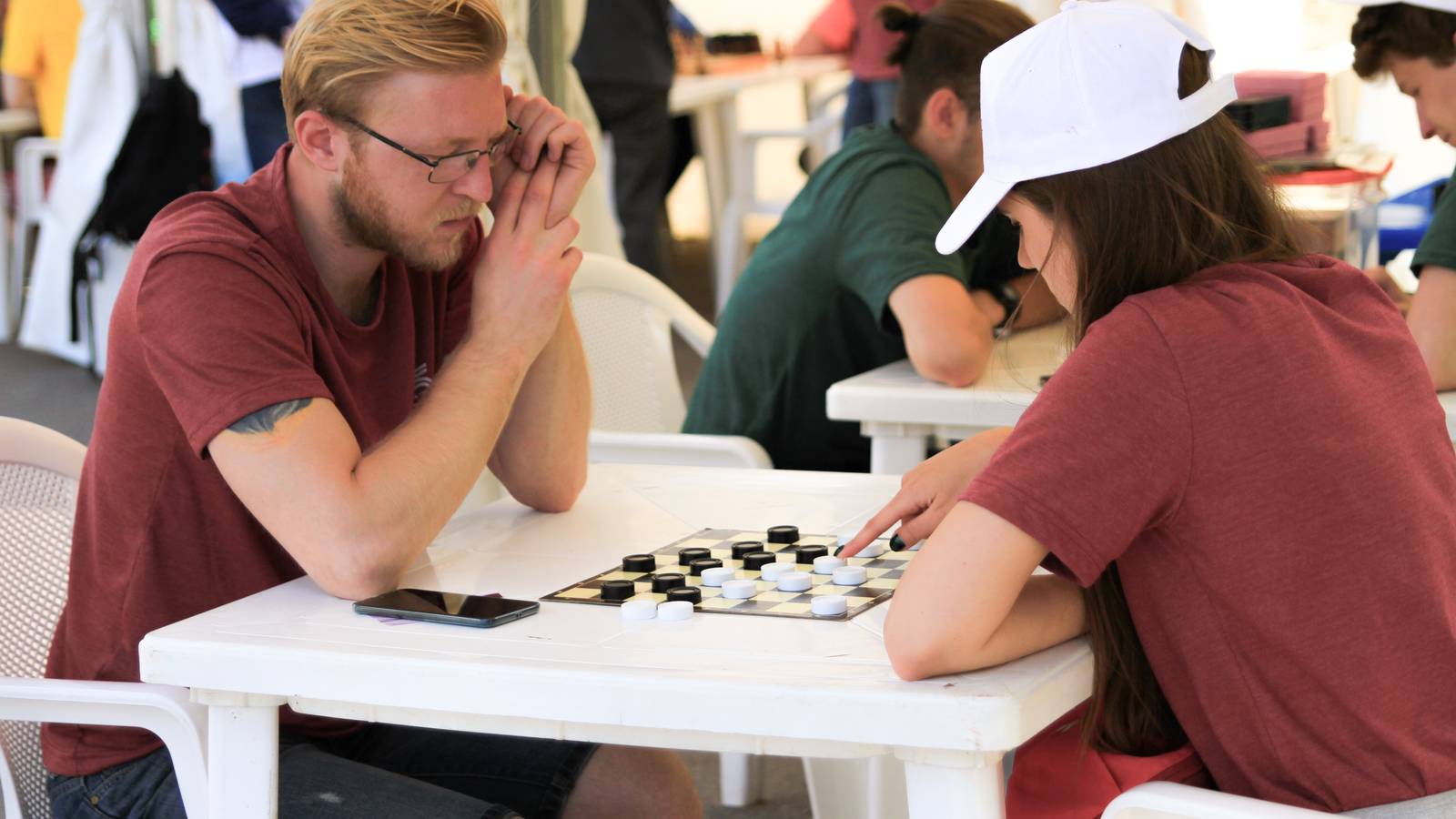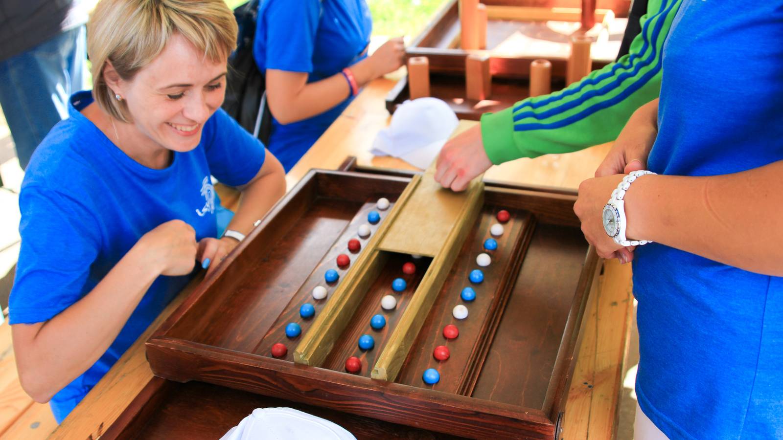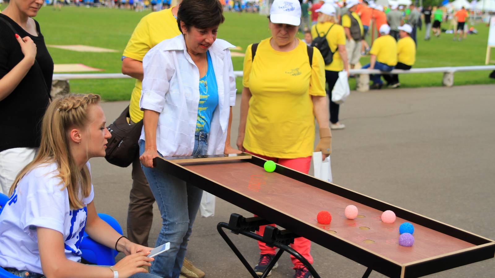 Для тех, кто предпочитает интеллектуальные и логические игры и забавы были установлены столы с заданиями на память, ловкость, эрудицию. Была даже большая доска с шахматами.