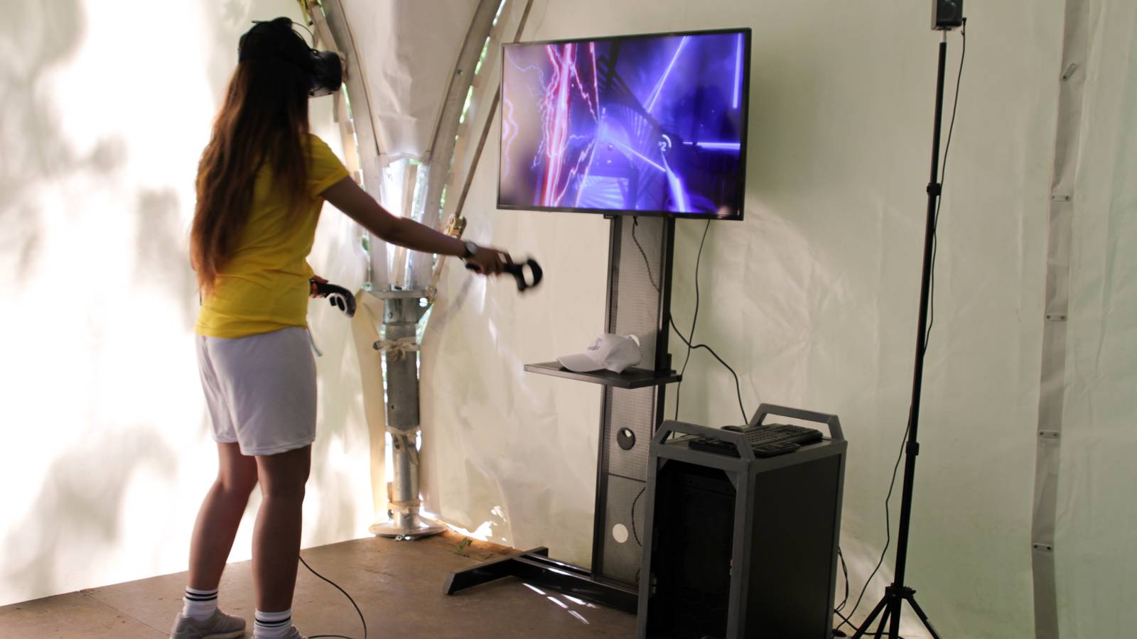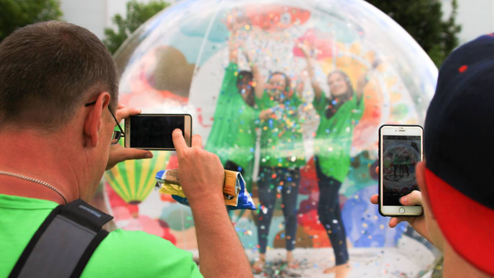 Сфотографироваться на память гостям предлагали в необычной фотозоне «Волшебный шар» среди облака блестящих конфетти. Гвоздем развлекательной программы стали аттракционы с использованием оборудования для виртуальной реальности. И дети, и взрослые с удовольствием и интересом участвовали в играх и наблюдали за игрой. Получится отличный праздник для посетителей всех возрастов и разных интересов.