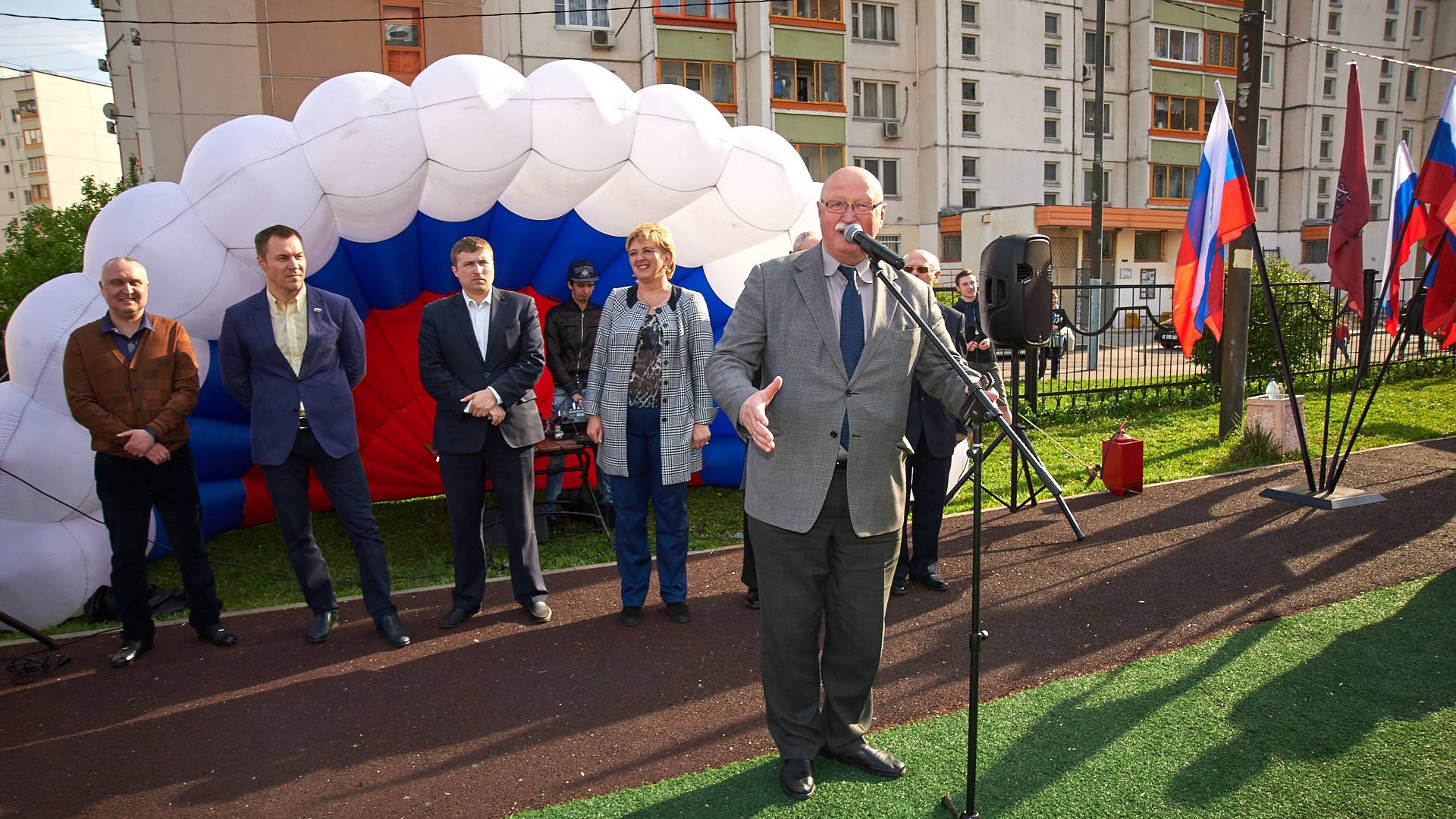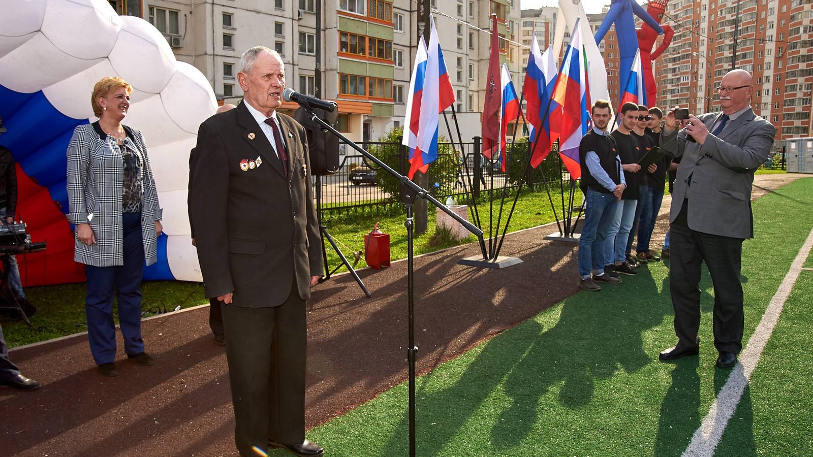 Вступительное слово о важности Родины и защиты Отечества выступили муниципальные депутаты и представители ветеранской организации. От участников не требовалось никакой предварительной подготовки, поэтому за ходом состязаний было интересно наблюдать и зрителям. Для малышей, присутствующих на площадке стало особенным удовольствием присоединиться с зажигательными танцами аэроменов в цветах российского флага. Праздничную площадку украшали напольные флагштоки с триколорами и эффектные композиции из надувных шаров.