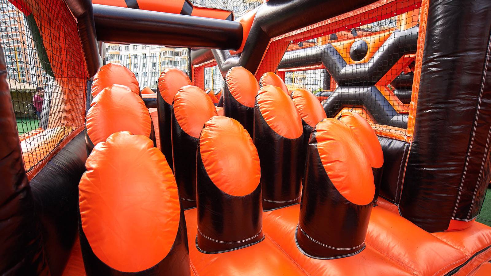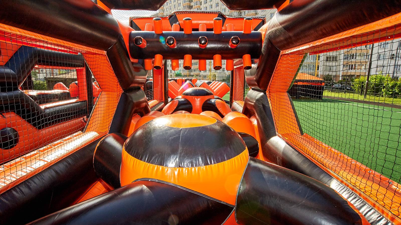 А для тех, кто хочет крутой комплект, но подешевле – в наличие есть надувные чёрно-оранжевые препятствия и их цветные аналоги.