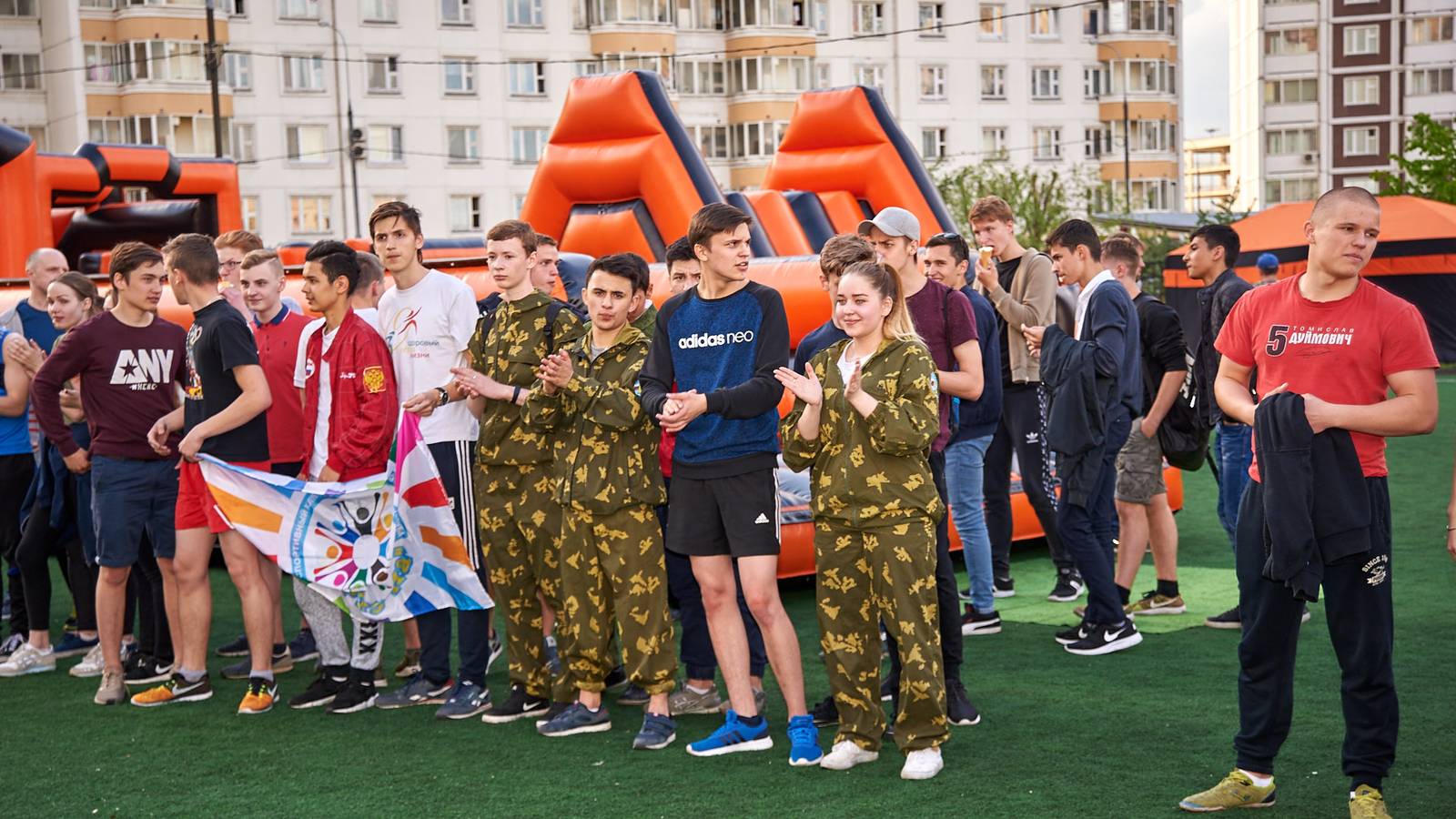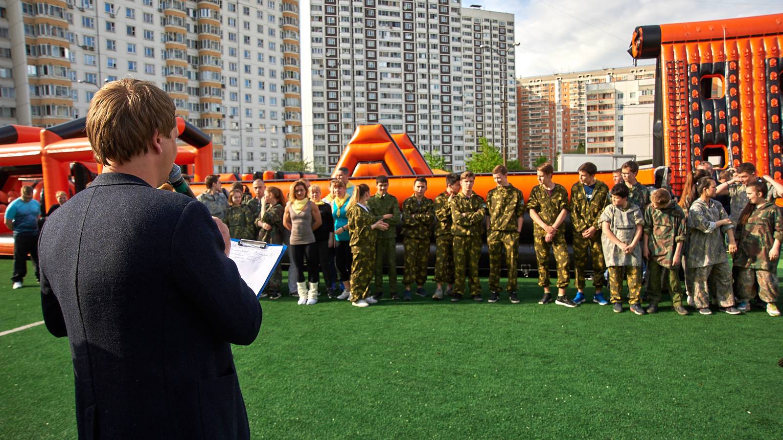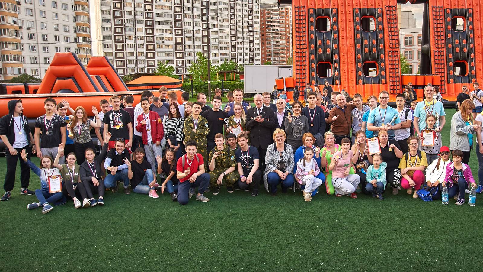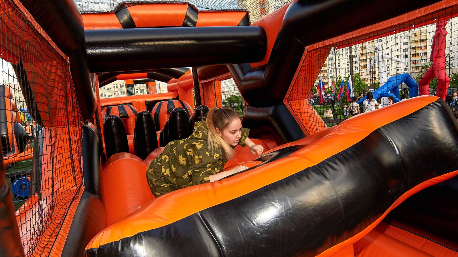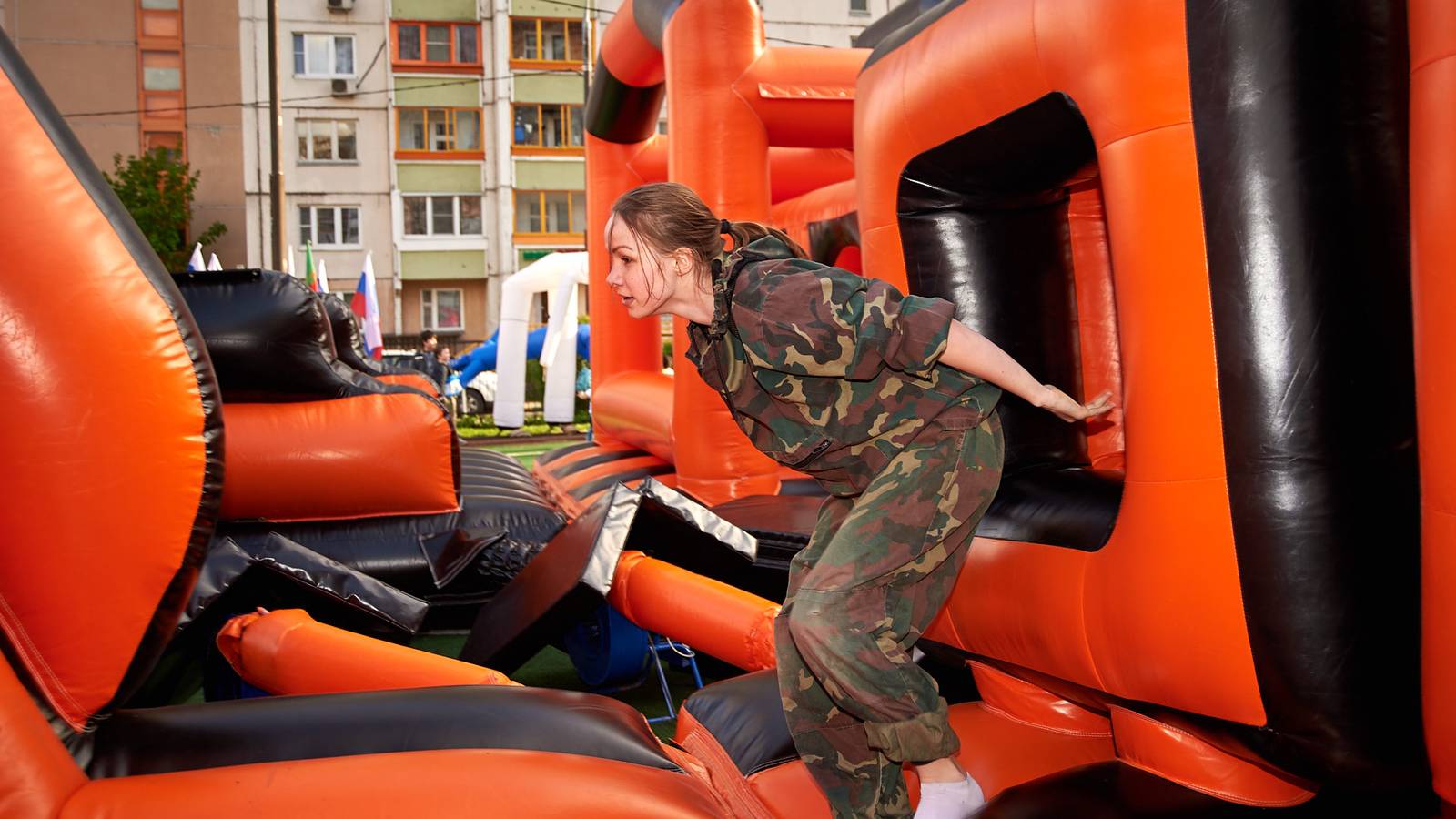 Военно-патриотические мероприятия – это именно та ниточка, которая неразрывно связывает поколения каждой семьи в нашей большой стране. Эта связь помогла организовать прекрасный спортивный праздник на дворовой площадке в одном из городов подмосковья. Надувная полоса препятствий стала главным элементом муниципальной спартакиады.