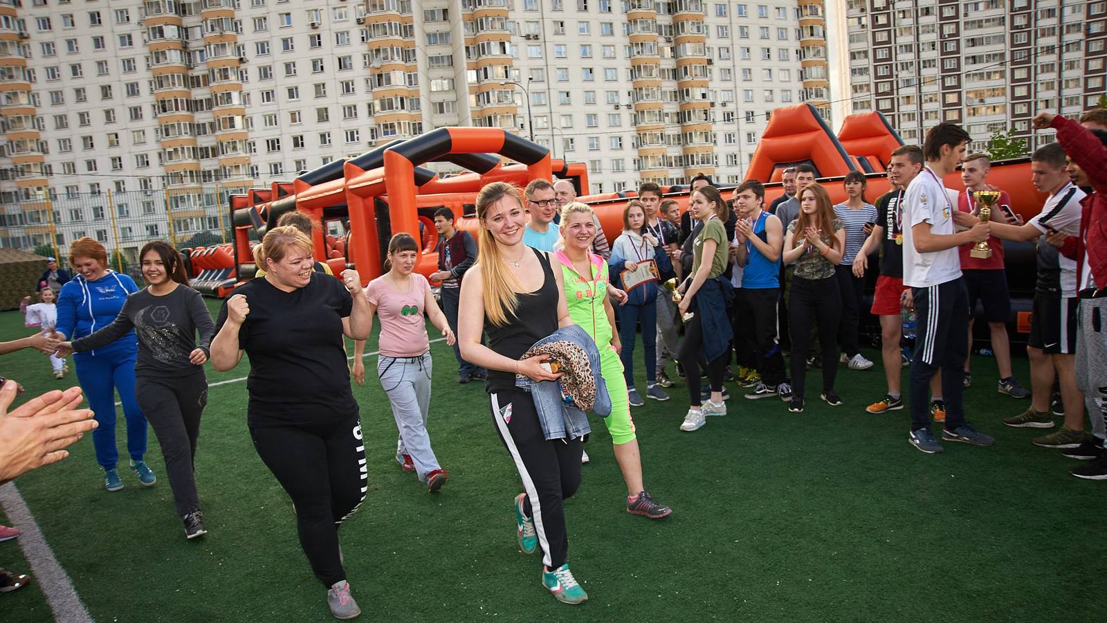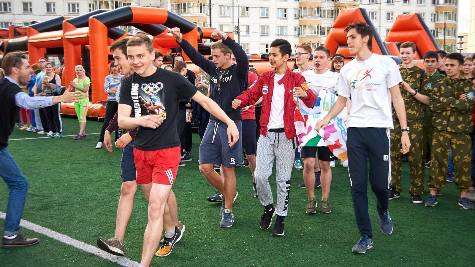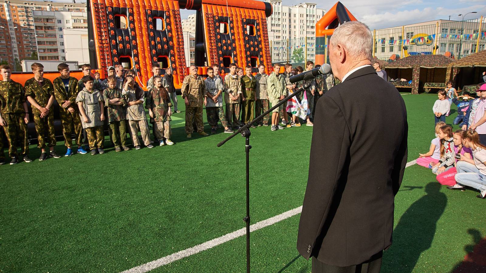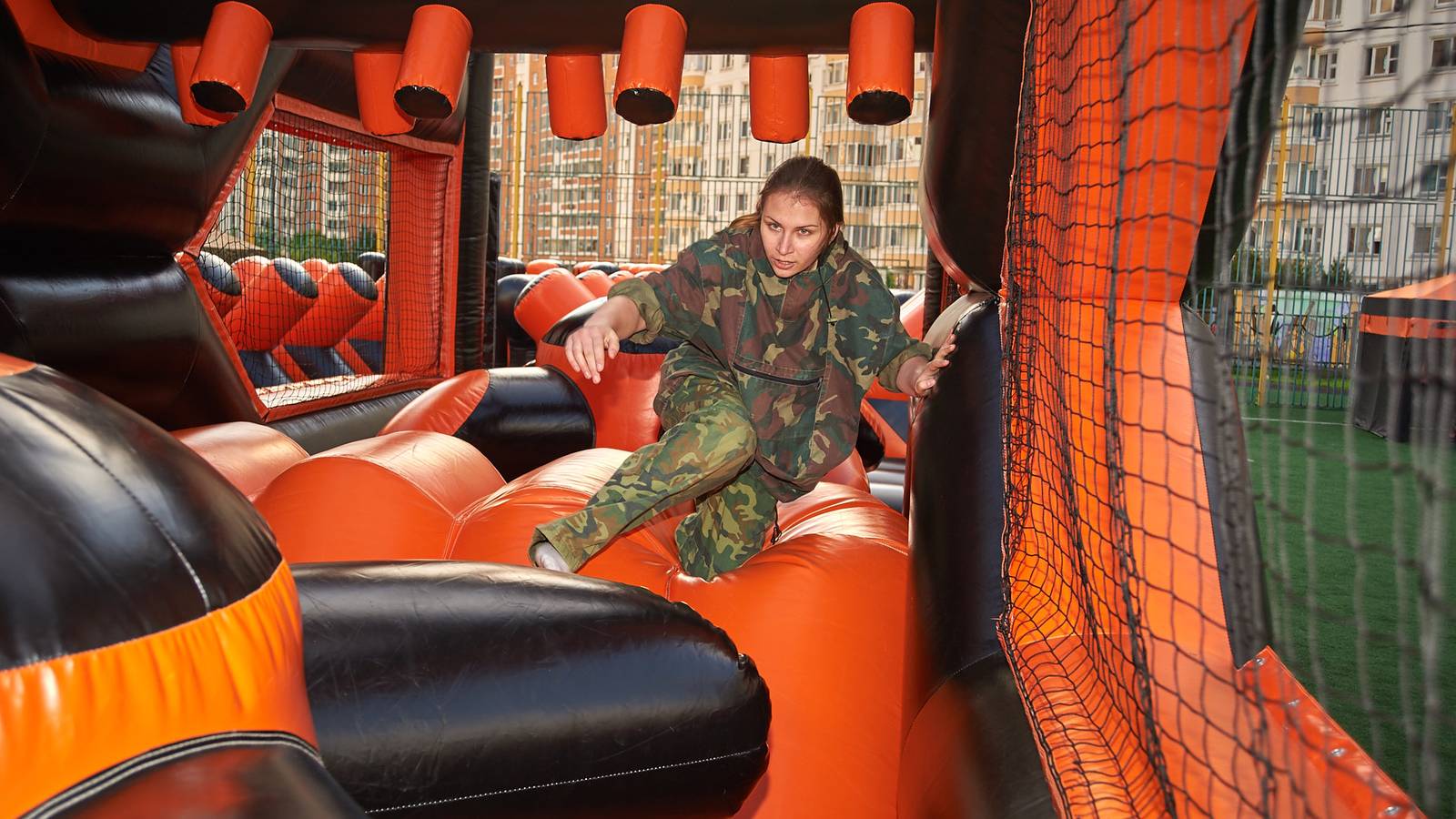 Военно-патриотические мероприятия – это именно та ниточка, которая неразрывно связывает поколения каждой семьи в нашей большой стране. Эта связь помогла организовать прекрасный спортивный праздник на дворовой площадке в одном из городов подмосковья. Надувная полоса препятствий стала главным элементом муниципальной спартакиады.
