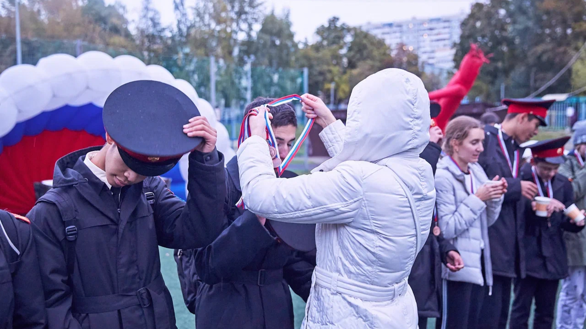 Отличный настрой помогла поддержать патриотическая атрибутика – большие государственные флаги на веерных флагштоках, аэромены в цветах триколора, а также сама надувная полоса в расцветке георгиевской ленты, одного из главных символов победы.