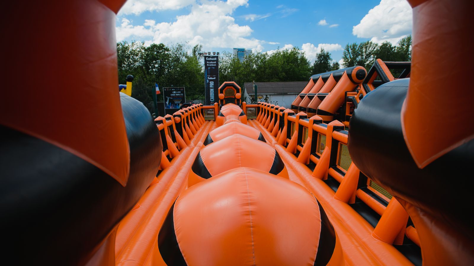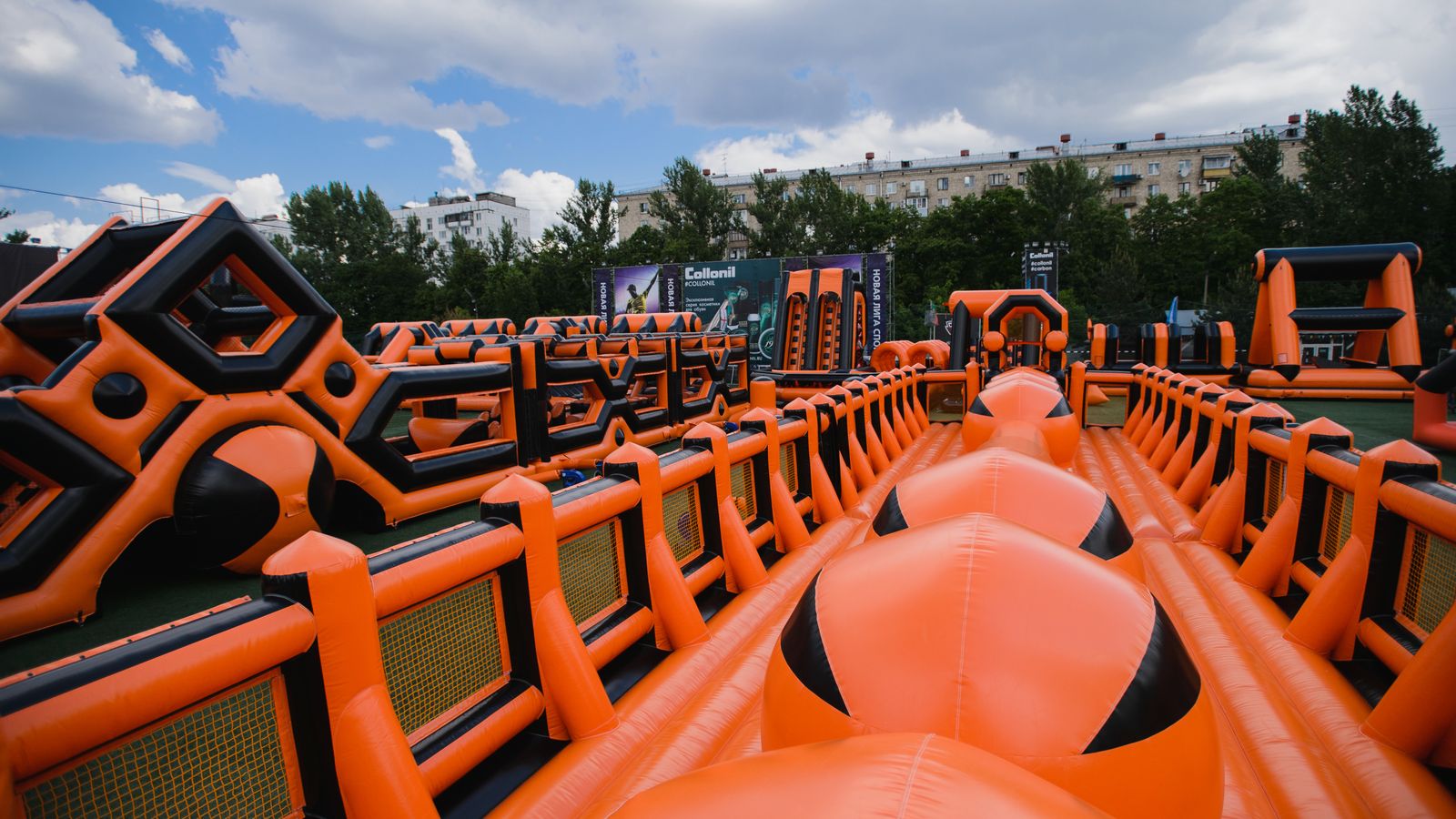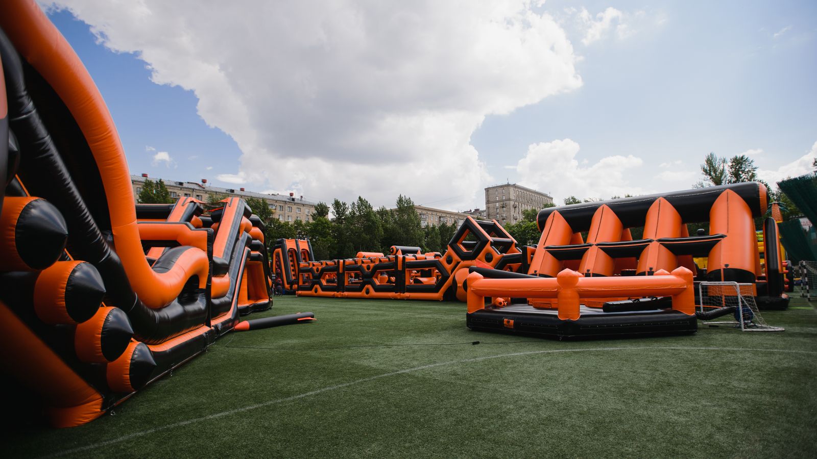 А для тех, кто хочет крутой комплект, но подешевле – в наличие есть надувные чёрно-оранжевые препятствия и их цветные аналоги.