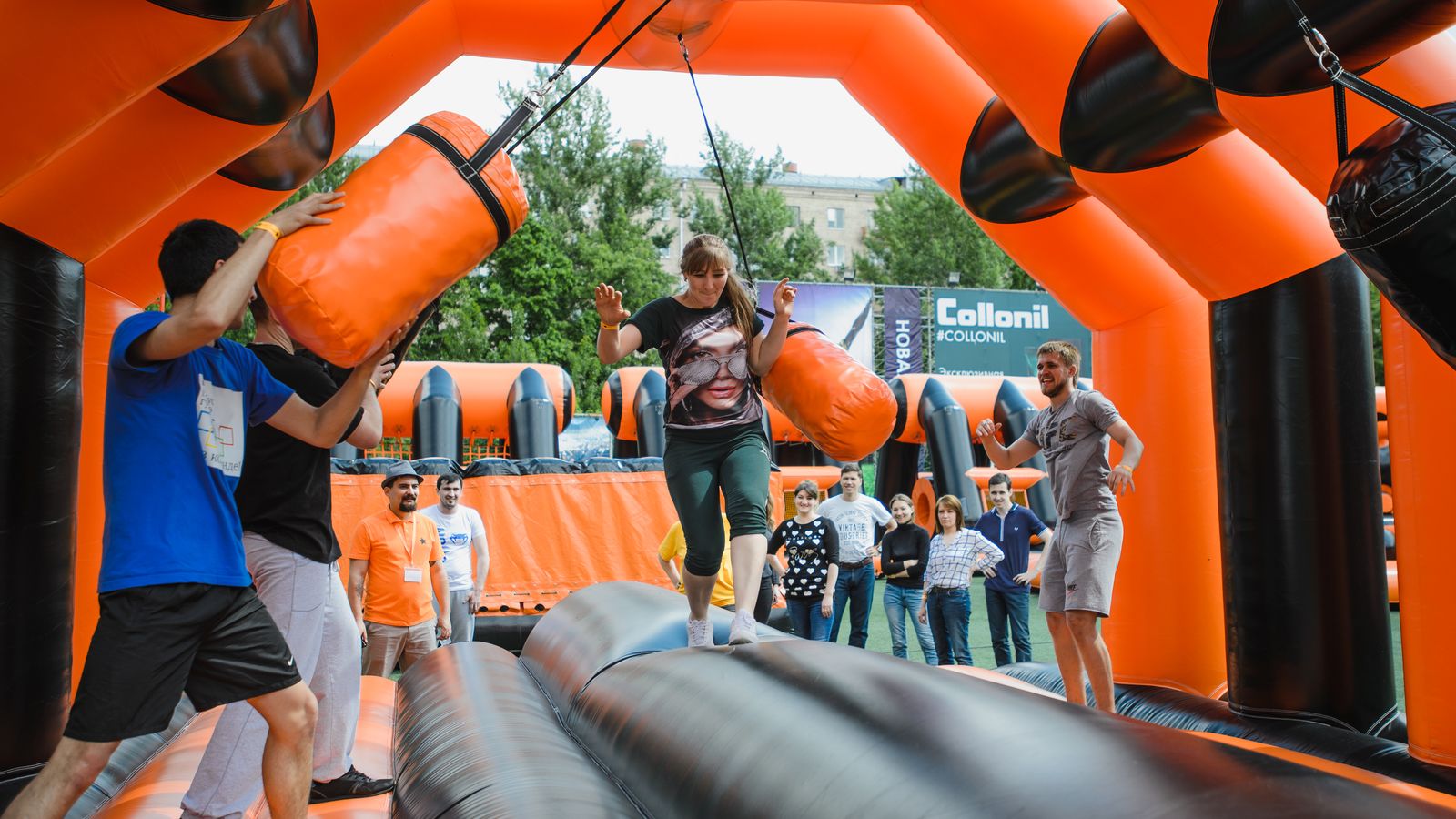 Потрясающий спортивный праздник с длинной полосой препятствий подарил участникам море радости и веселья. Яркий фирменный дизайн в черном и оранжевом цветах выглядел очень стильно.