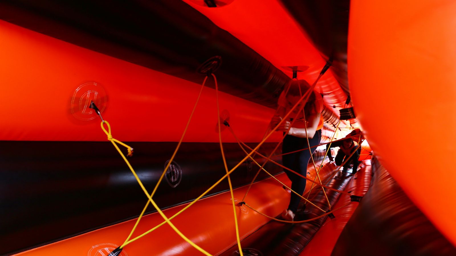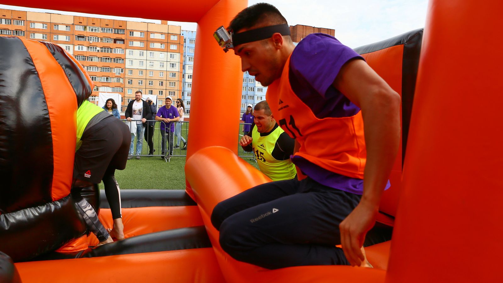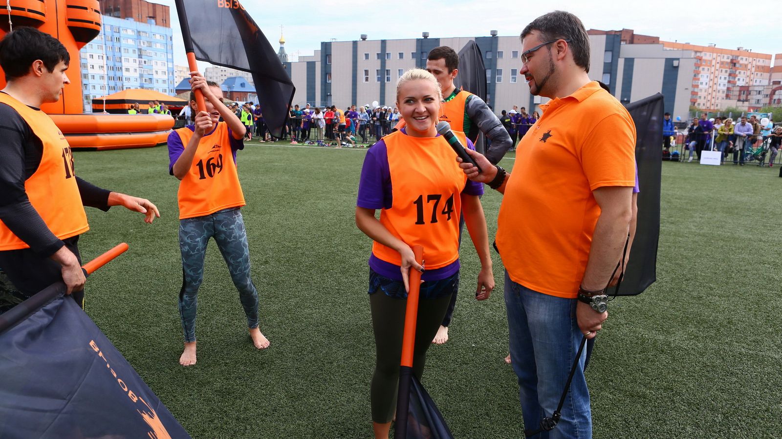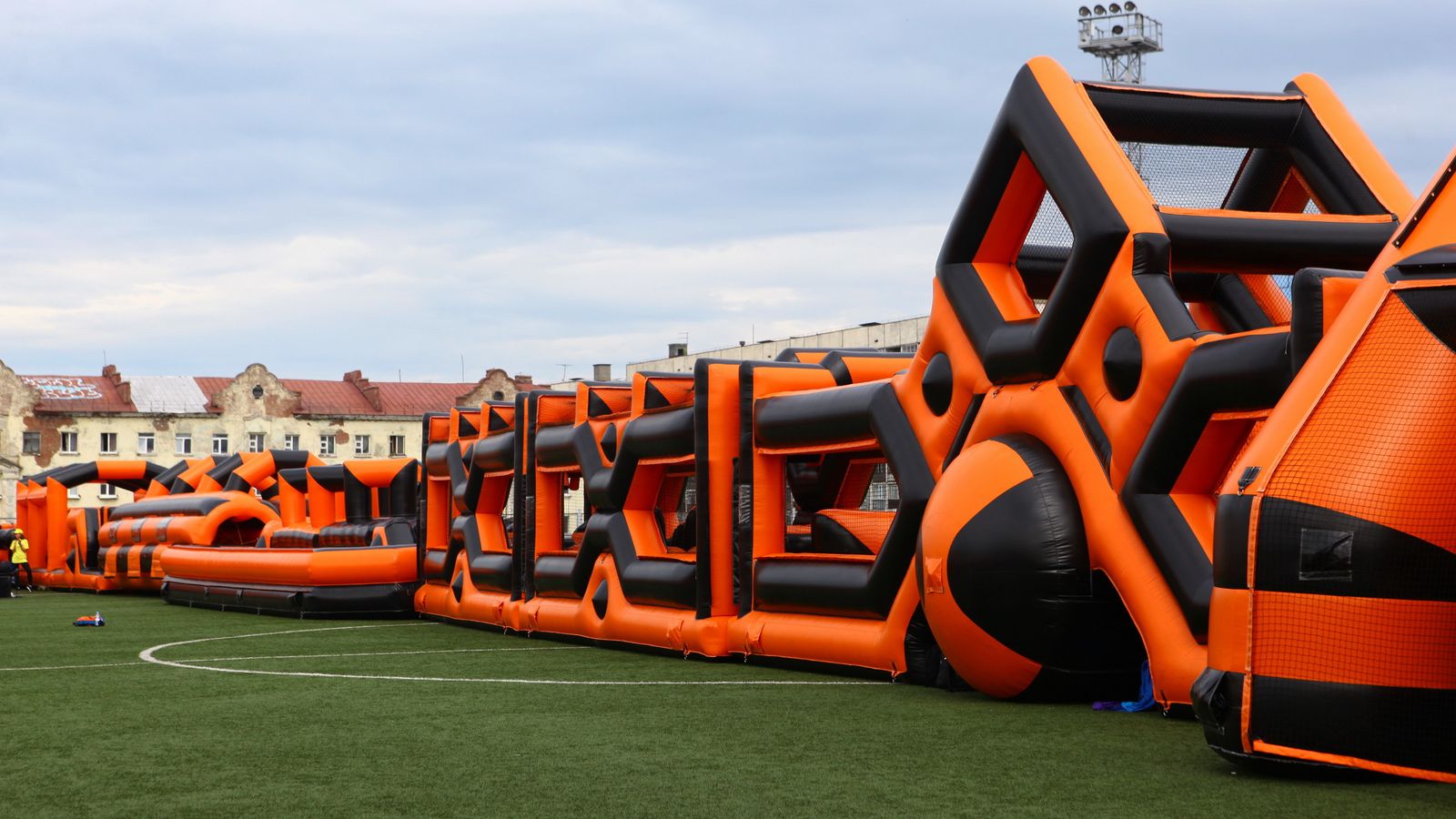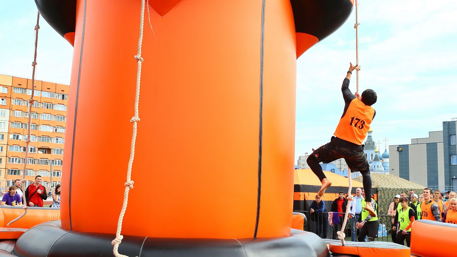 «Вызов принят» предоставили для участников спортивной гонки одну из самых протяженных и сложных надувных трасс с препятствиями. Яркая черно-оранжевая надувная конструкция батутной трассы возвышалась над искусственным газоном городского стадиона и уже заранее среди финалистов слышались восторженные возгласы.
