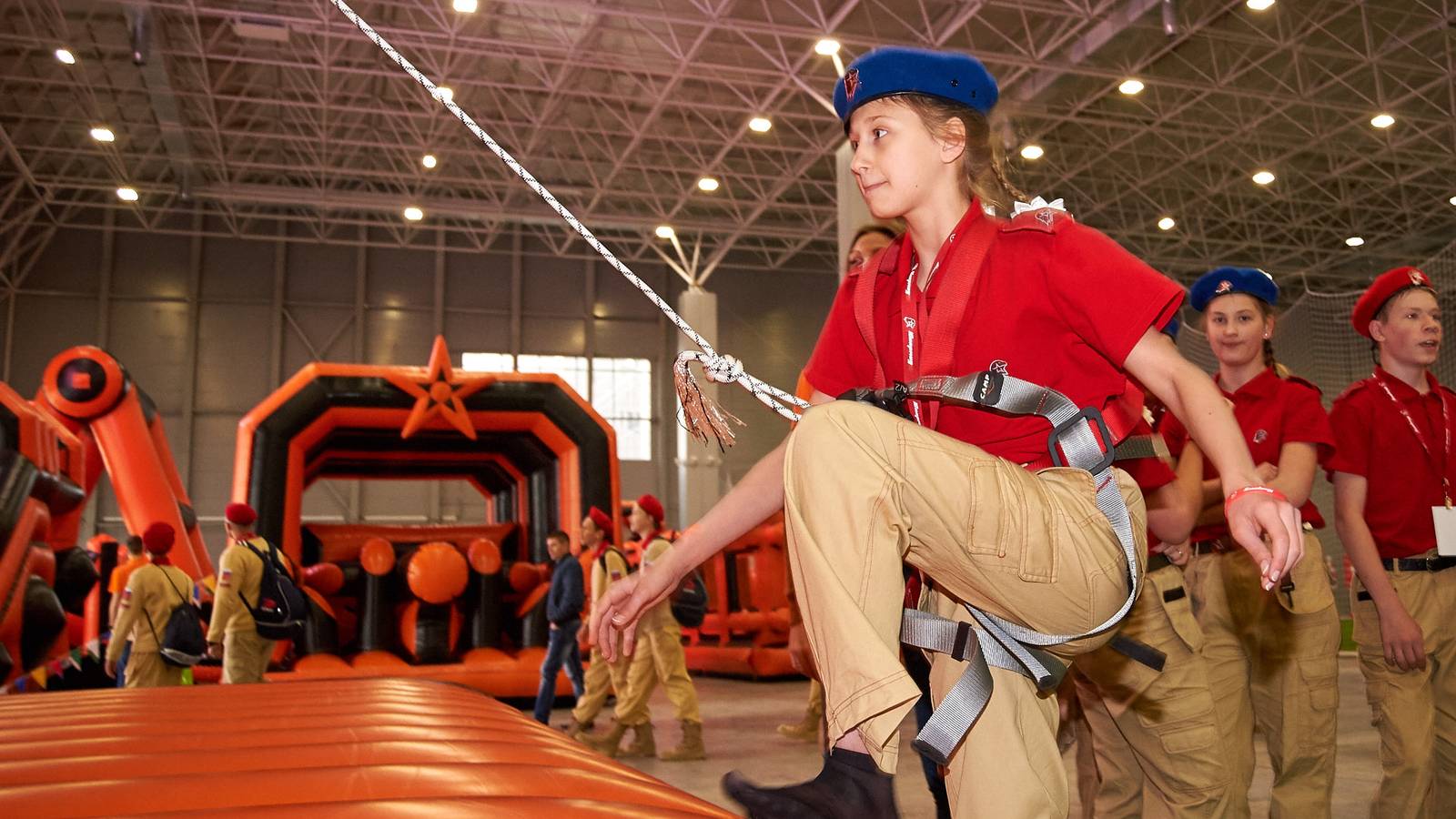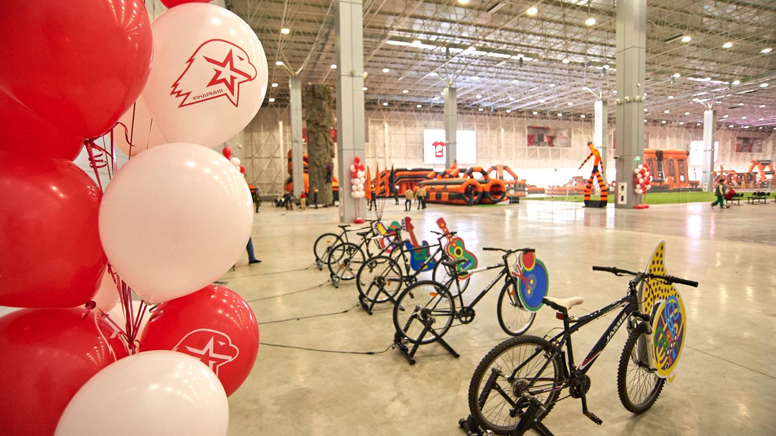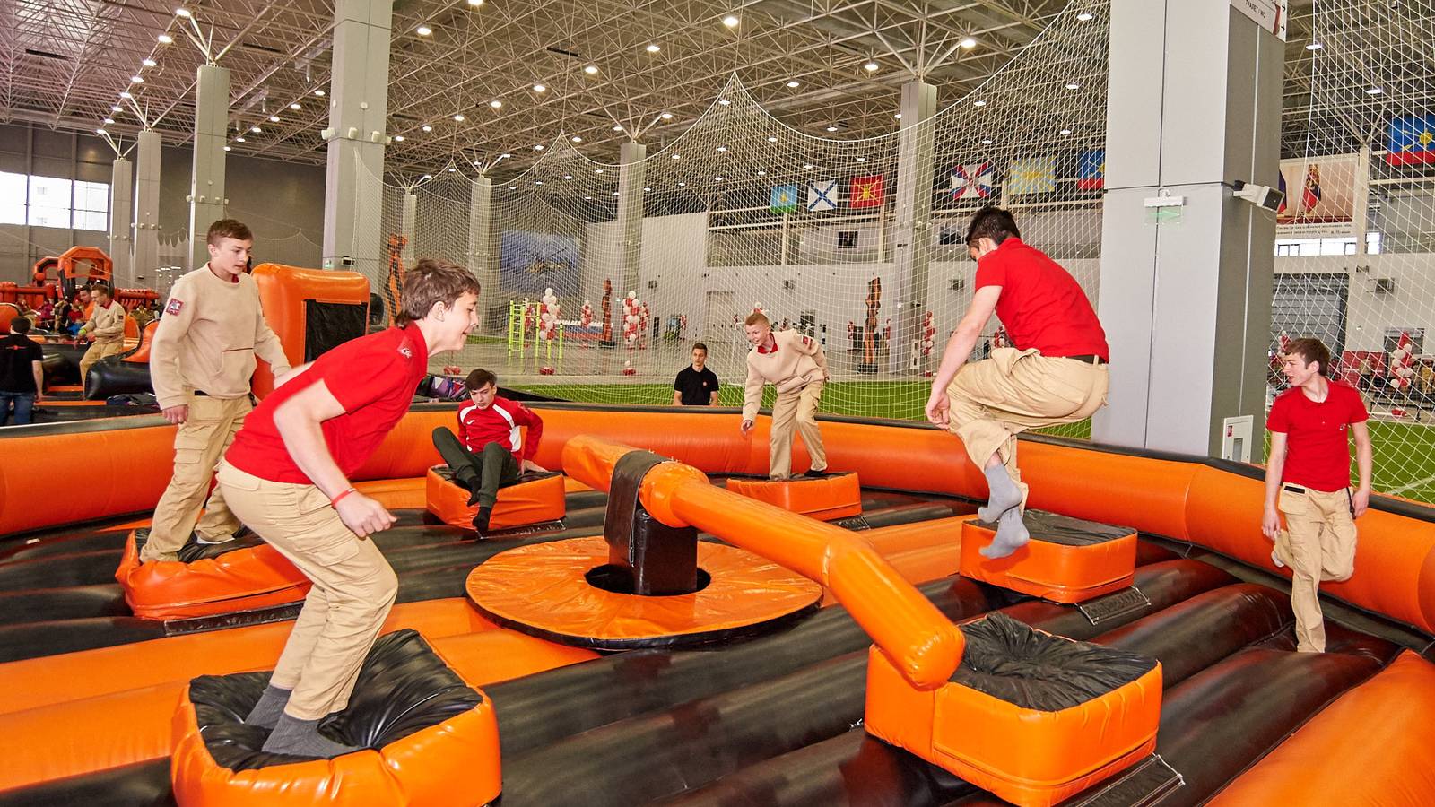 Комбинированная трасса понравилась всем, ведь здесь можно было вдоволь прыгать, забираться на горки и спускаться с них, лавировать между надувными столбами, забираться по канату и даже проехать быстрее соперника заданное расстояние на велотренажере.