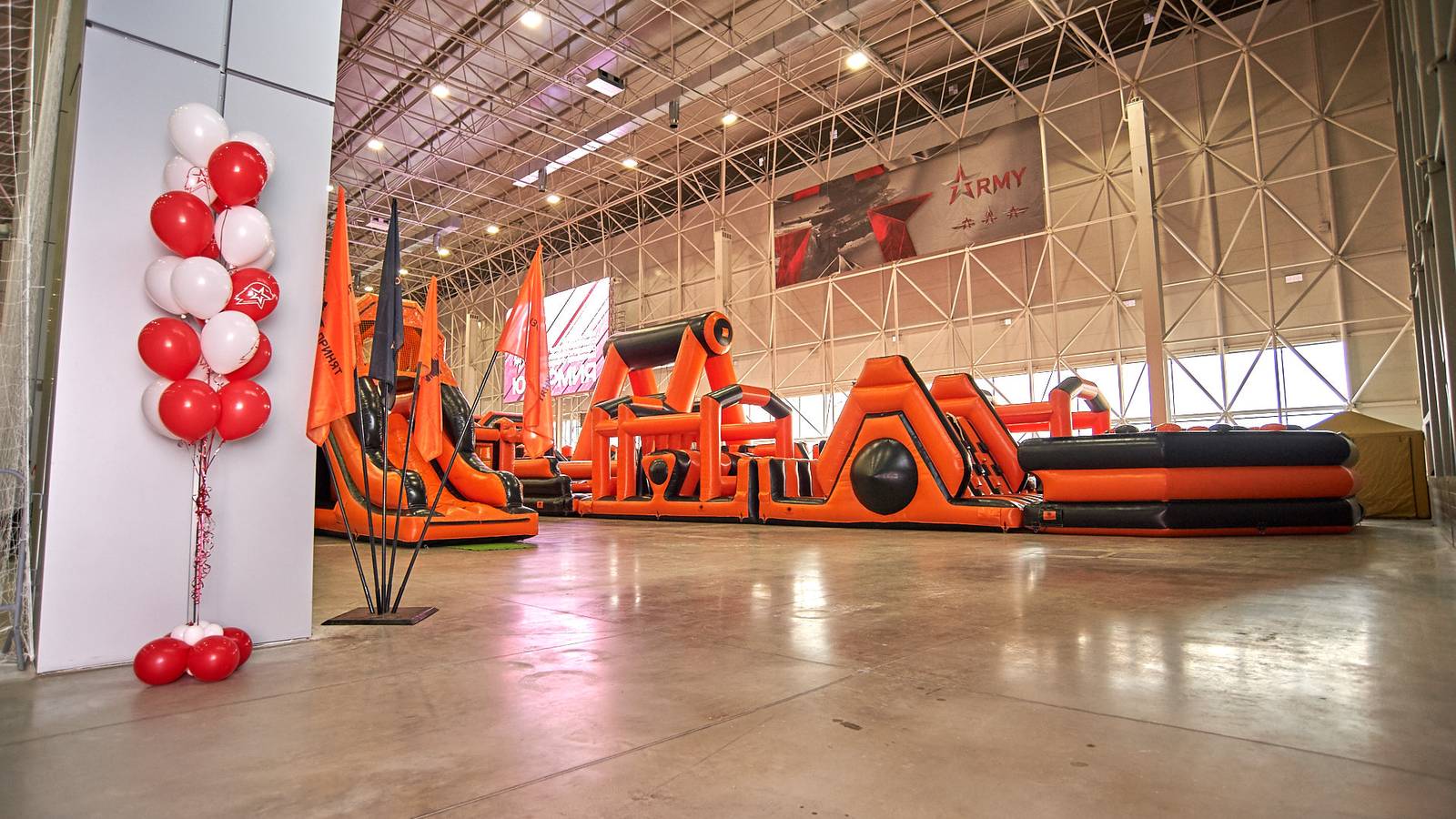 А для тех, кто хочет крутой комплект, но подешевле – в наличие есть надувные чёрно-оранжевые препятствия и их цветные аналоги.