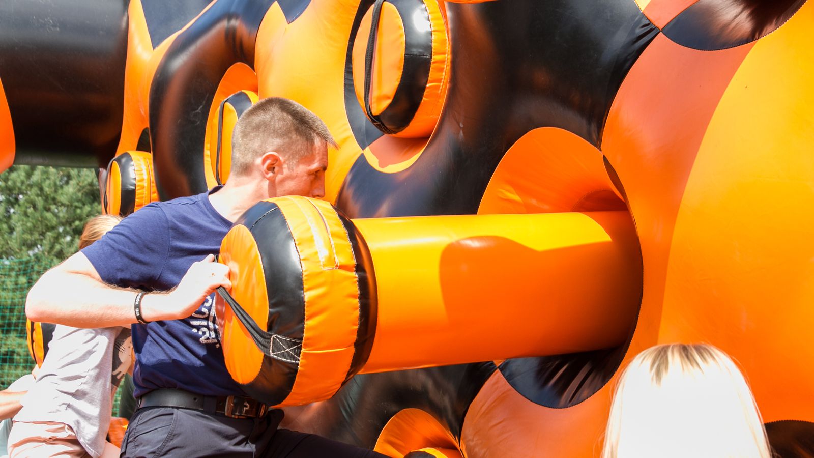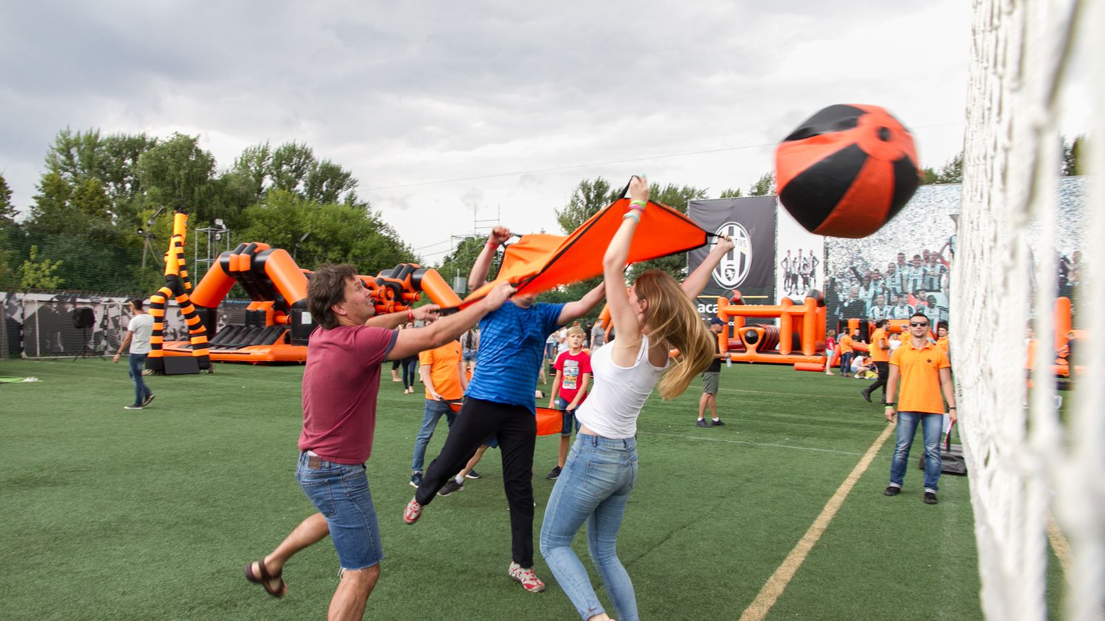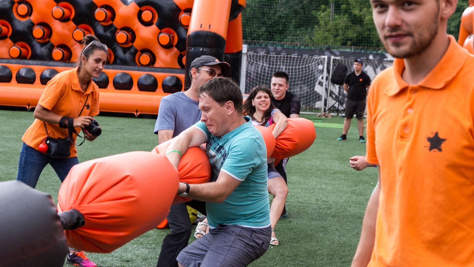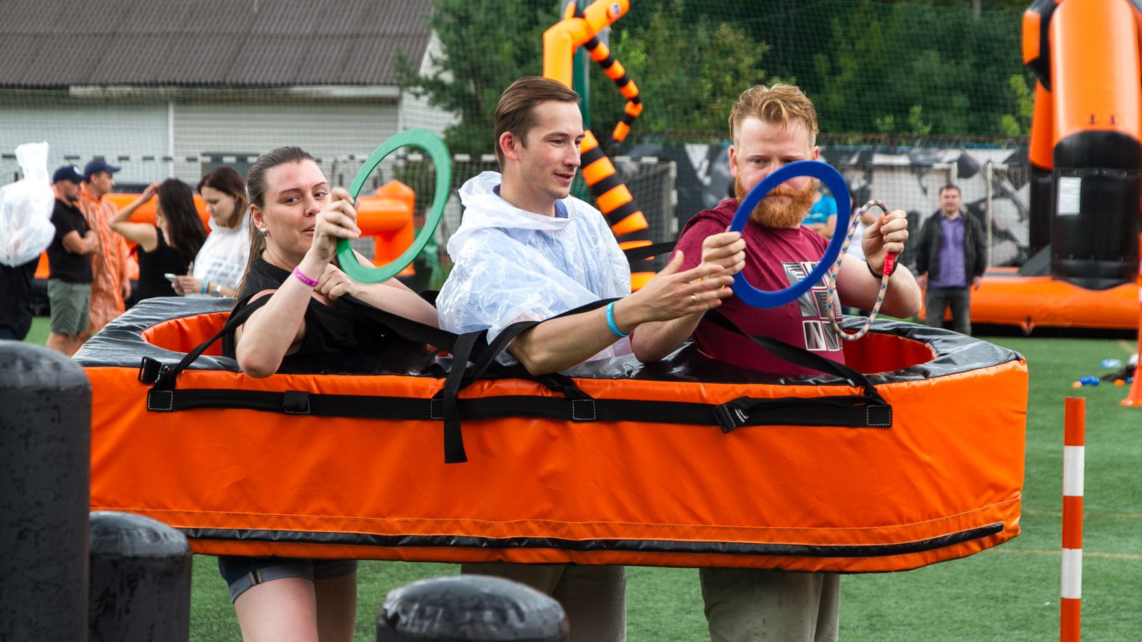 А для тех, кто хочет крутой комплект, но подешевле – в наличие есть надувные чёрно-оранжевые препятствия и их цветные аналоги.