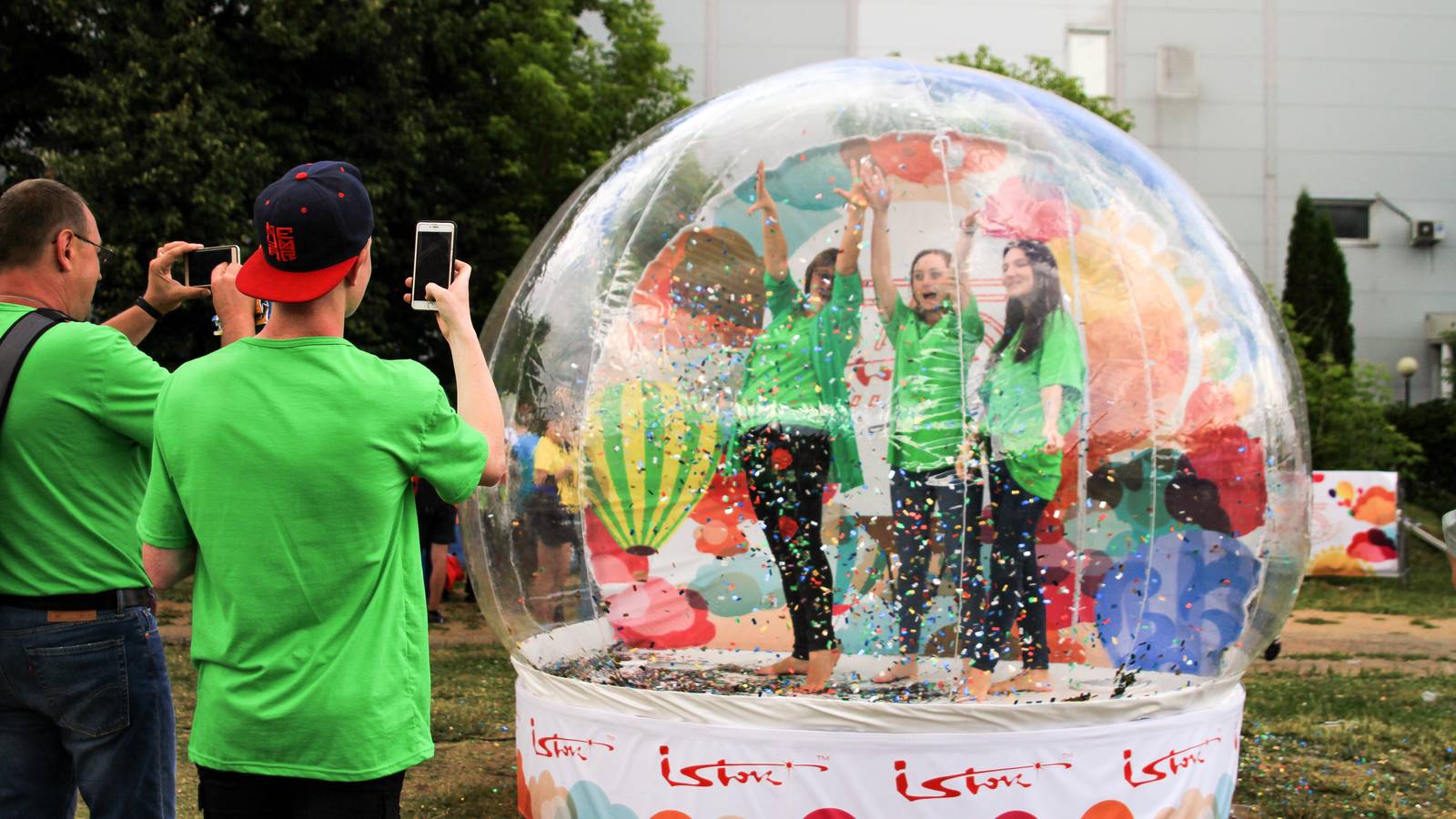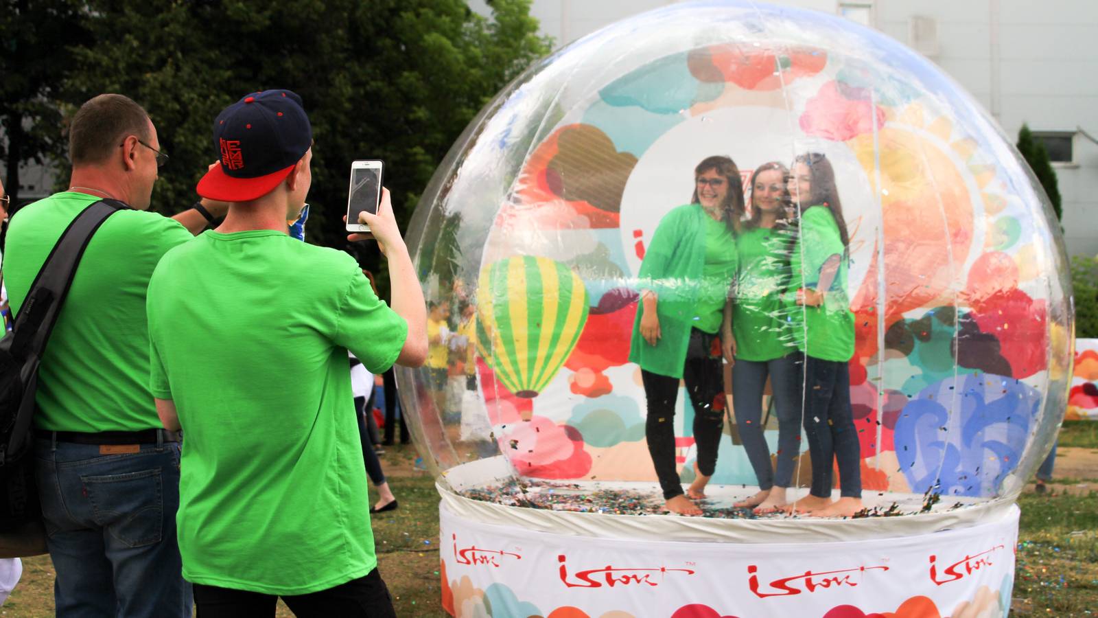Сфотографироваться на память гостям предлагали в необычной фотозоне «Волшебный шар» среди облака блестящих конфетти. Гвоздем развлекательной программы стали аттракционы с использованием оборудования для виртуальной реальности. И дети, и взрослые с удовольствием и интересом участвовали в играх и наблюдали за игрой. Получится отличный праздник для посетителей всех возрастов и разных интересов.
