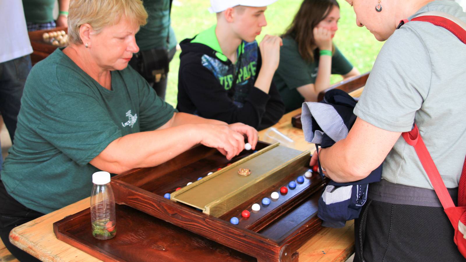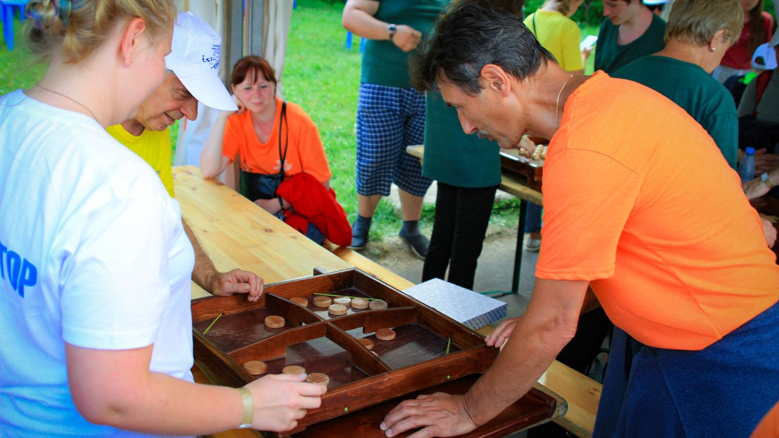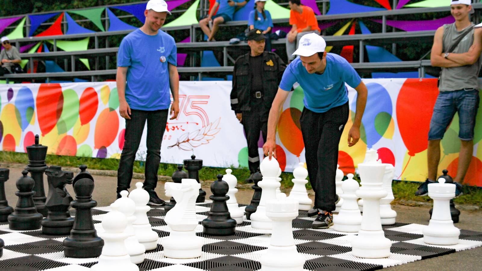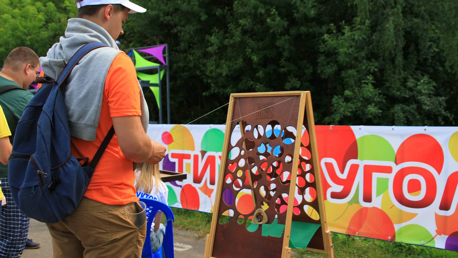 Для тех, кто предпочитает интеллектуальные и логические игры и забавы были установлены столы с заданиями на память, ловкость, эрудицию. Была даже большая доска с шахматами.
