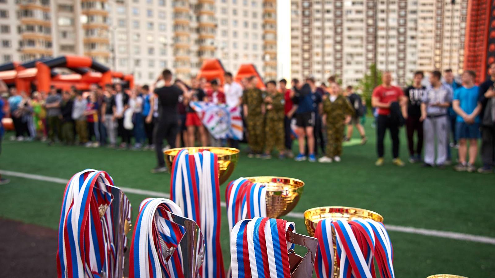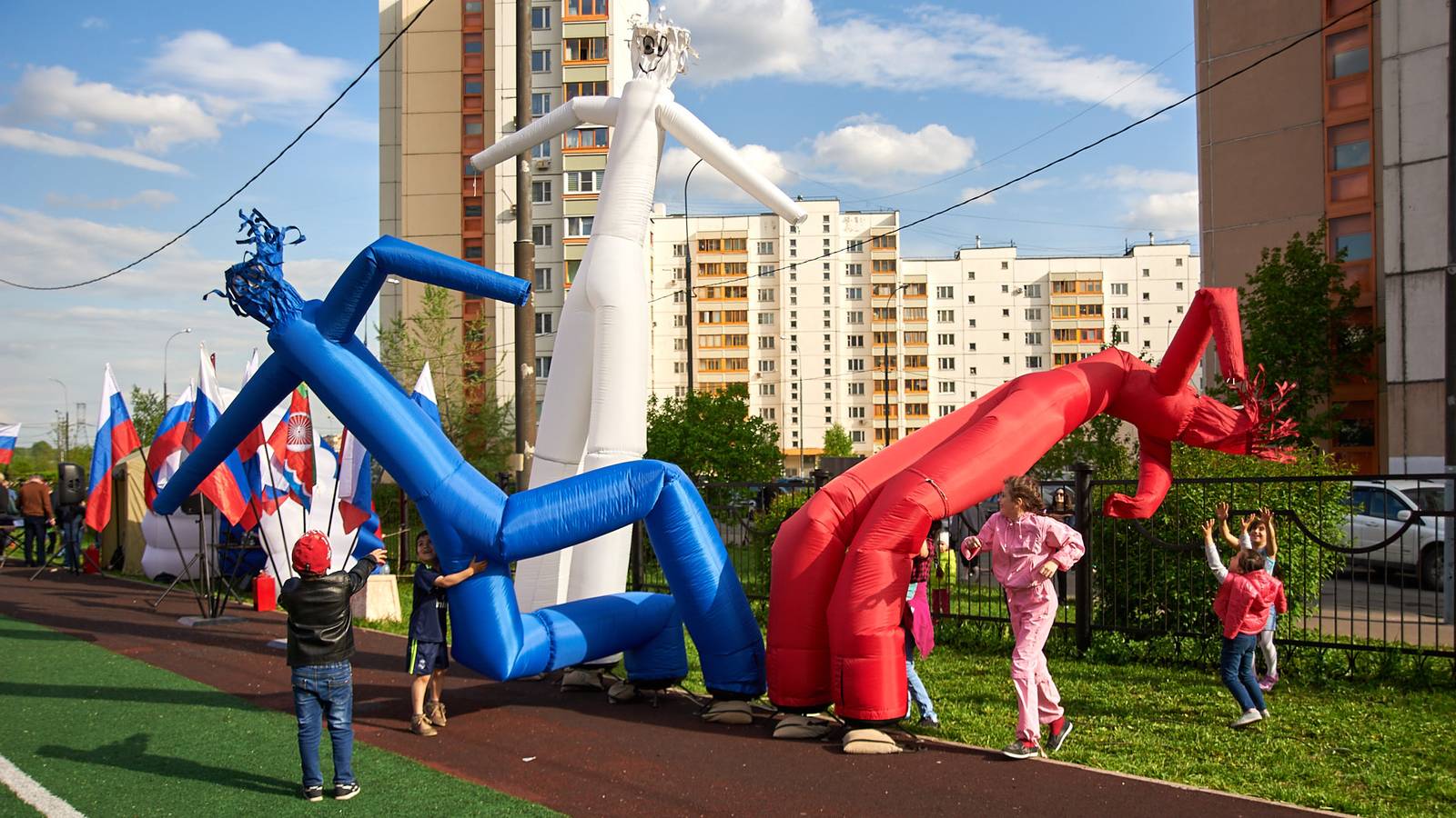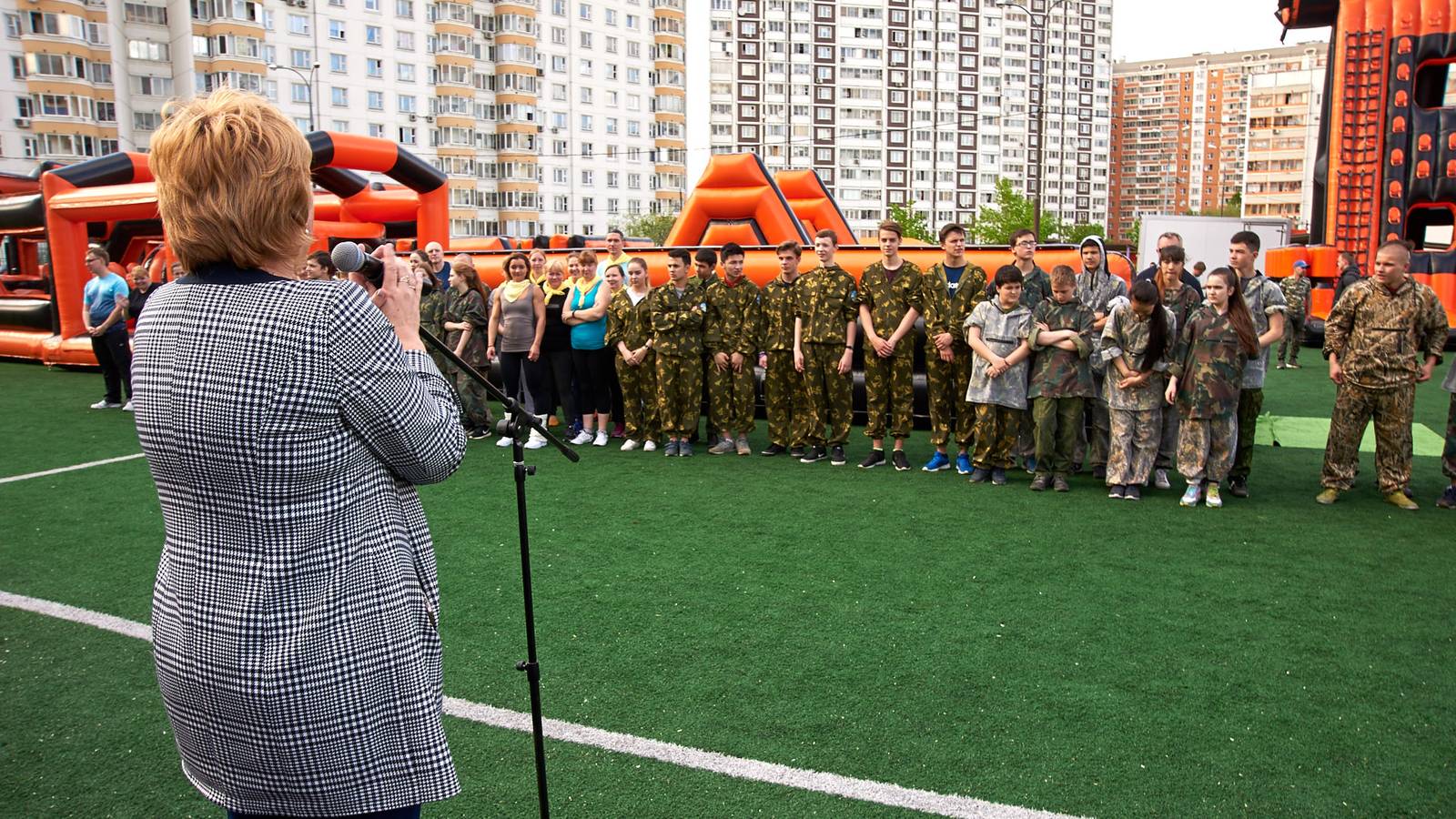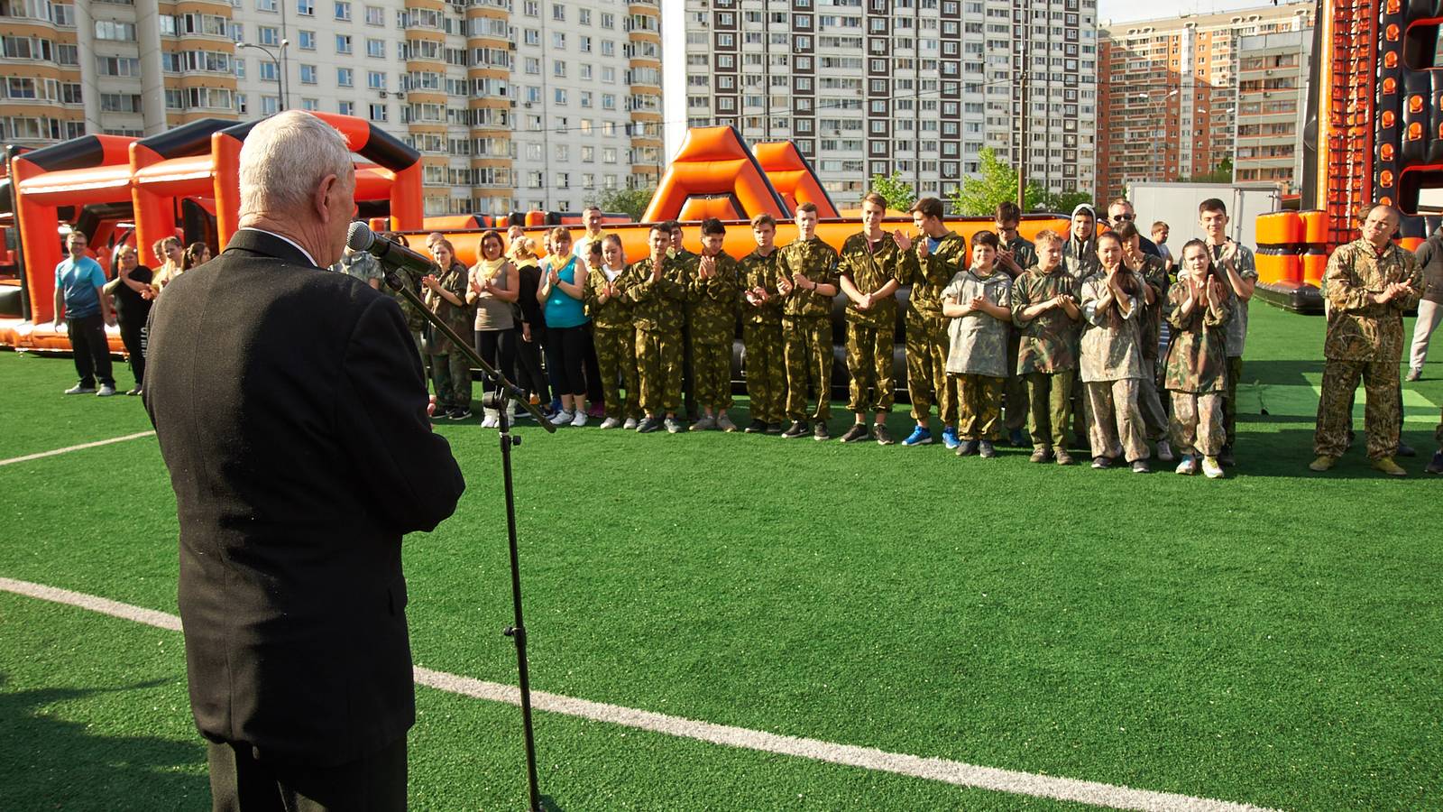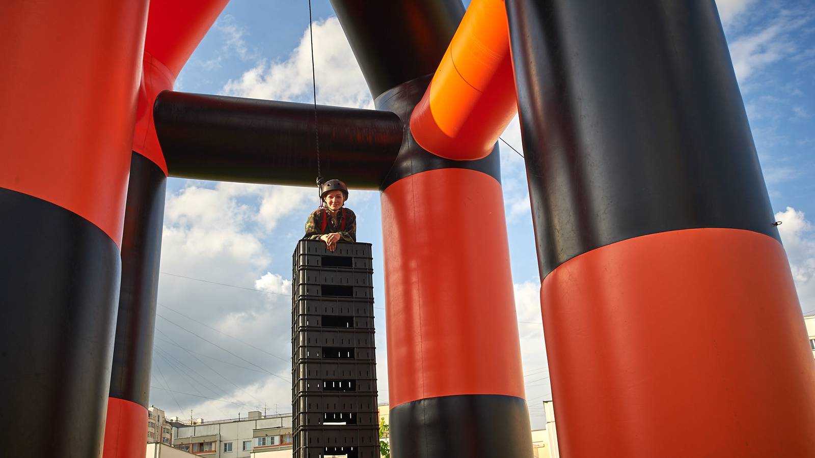Военно-патриотические мероприятия – это именно та ниточка, которая неразрывно связывает поколения каждой семьи в нашей большой стране. Эта связь помогла организовать прекрасный спортивный праздник на дворовой площадке в одном из городов подмосковья. Надувная полоса препятствий стала главным элементом муниципальной спартакиады.