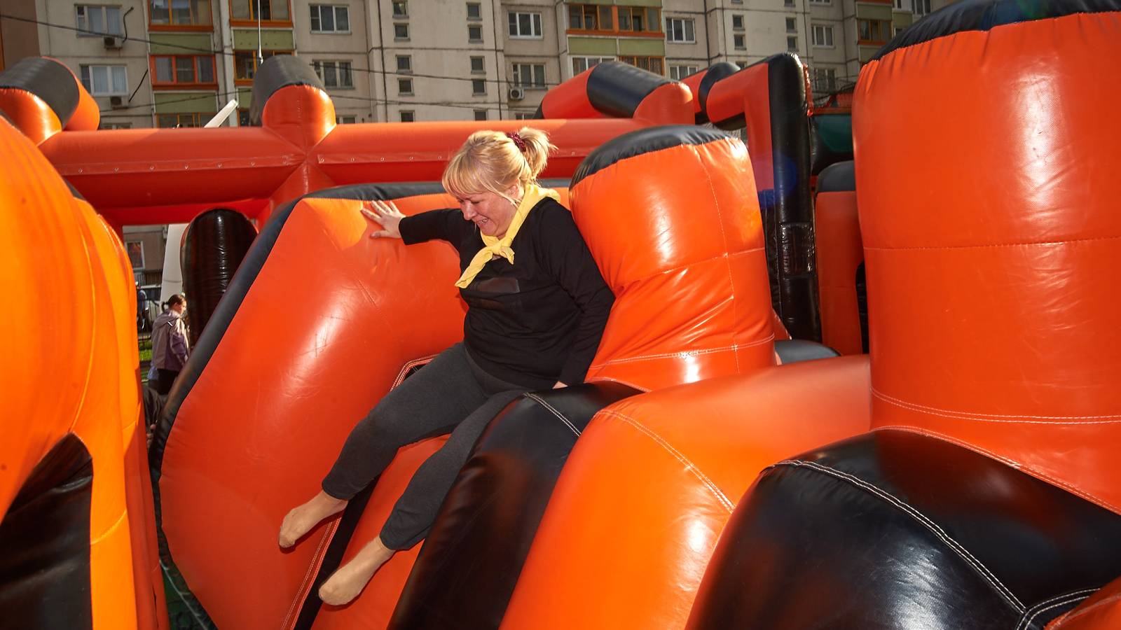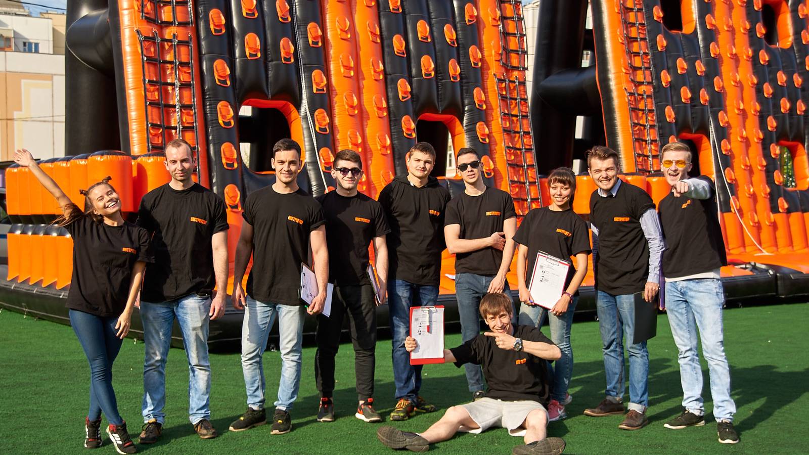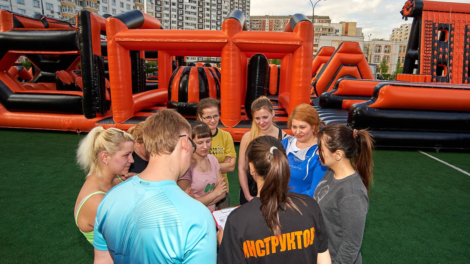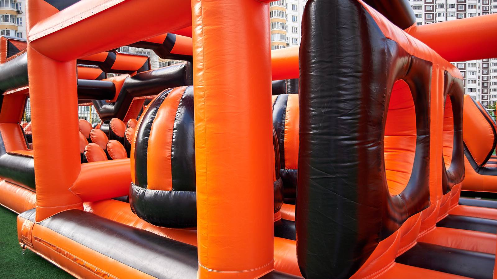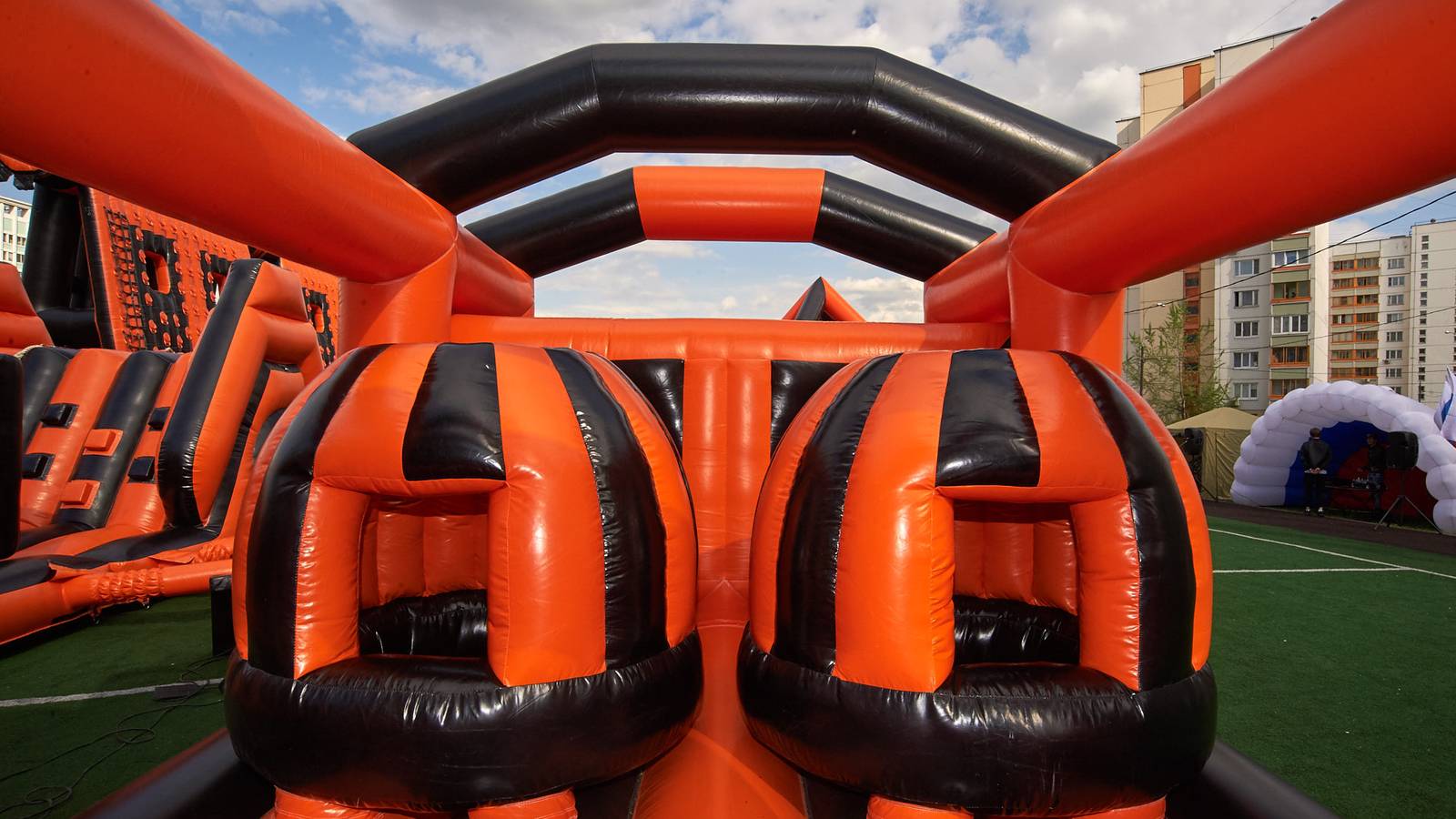 А для тех, кто хочет крутой комплект, но подешевле – в наличие есть надувные чёрно-оранжевые препятствия и их цветные аналоги.