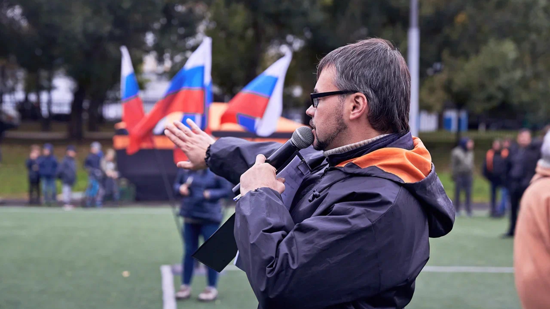 Отличный настрой помогла поддержать патриотическая атрибутика – большие государственные флаги на веерных флагштоках, аэромены в цветах триколора, а также сама надувная полоса в расцветке георгиевской ленты, одного из главных символов победы.