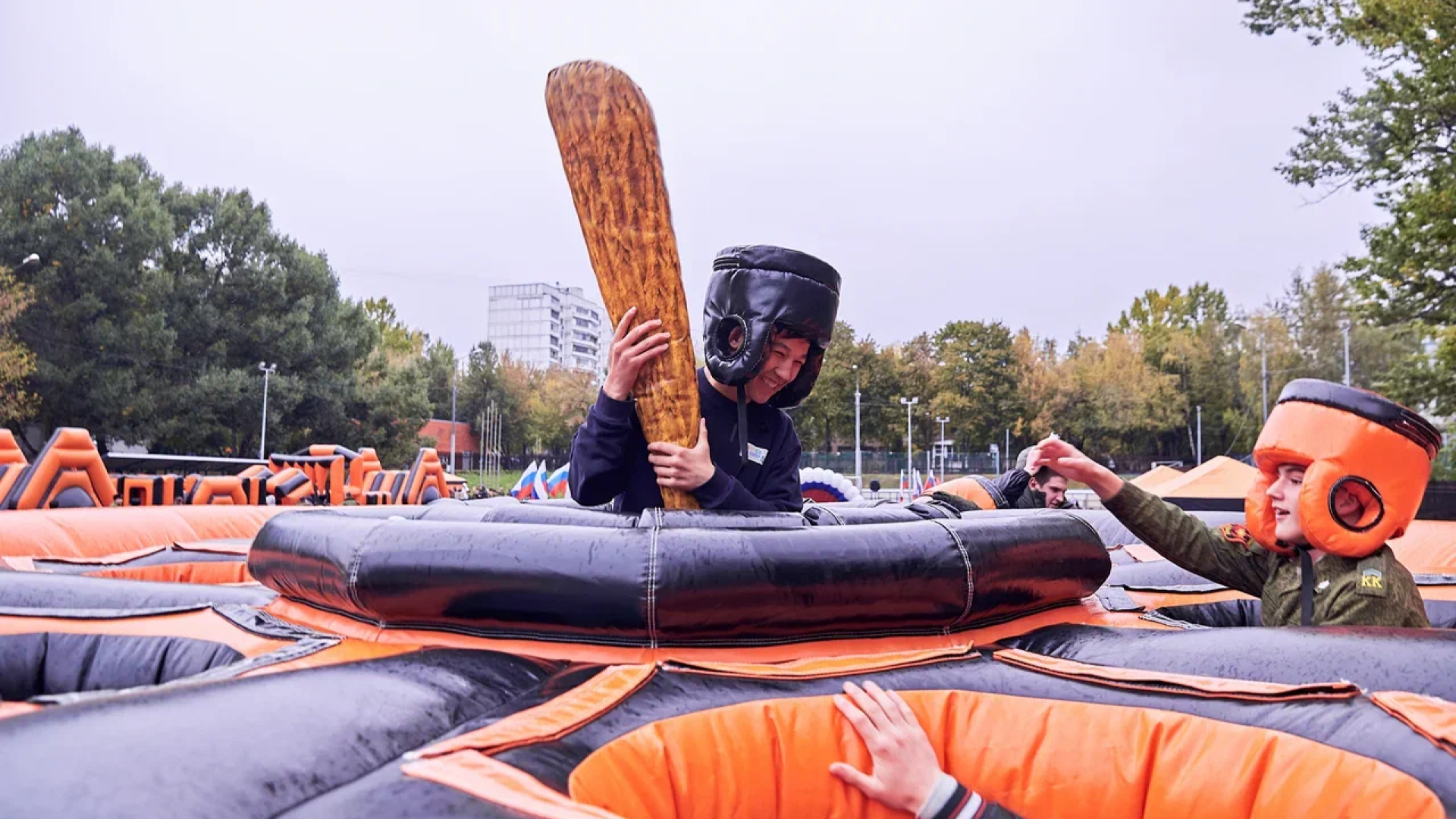 Военно-спортивное мероприятие с элементами патриотического воспитания было организовано при участии компании «Вызов принят» для подростков в подмосковном Бирюлево. Полоса препятствий из полосатых черно-оранжевых батутов была установлена на искусственный настил открытого стадиона.