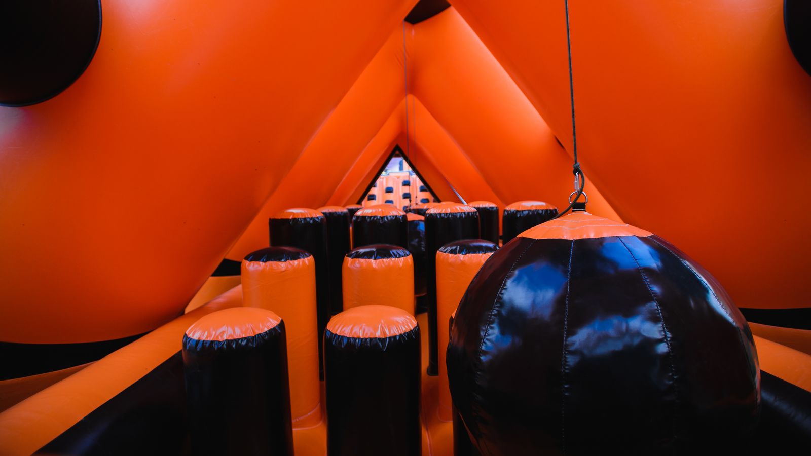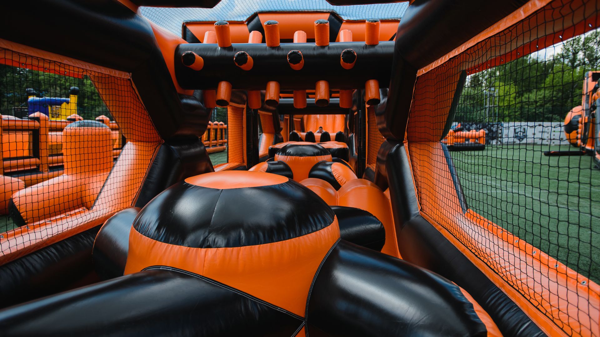 А для тех, кто хочет крутой комплект, но подешевле – в наличие есть надувные чёрно-оранжевые препятствия и их цветные аналоги.