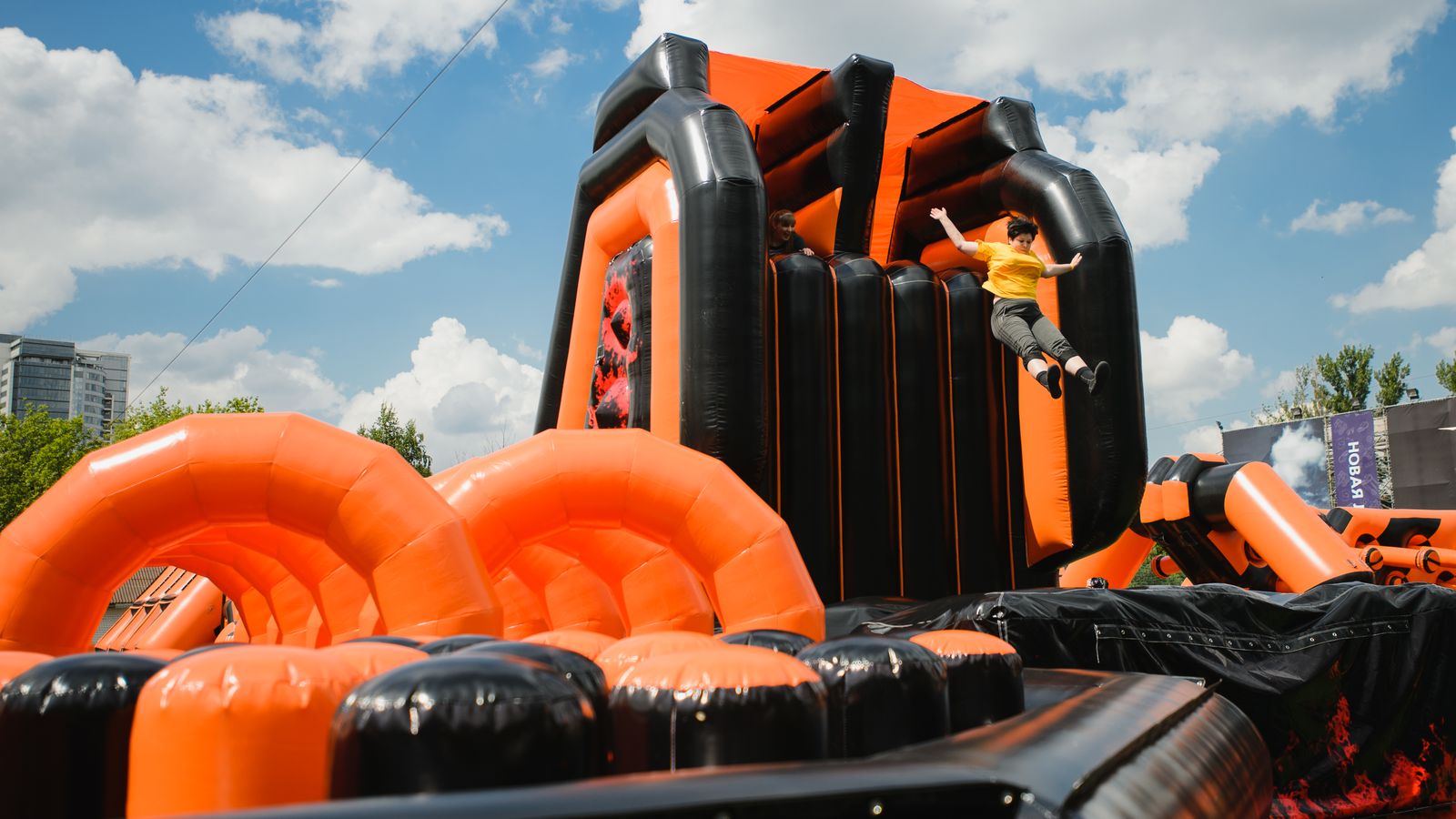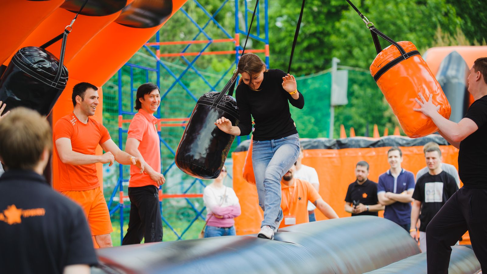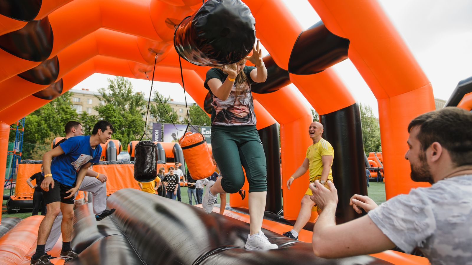 Потрясающий спортивный праздник с длинной полосой препятствий подарил участникам море радости и веселья. Яркий фирменный дизайн в черном и оранжевом цветах выглядел очень стильно.