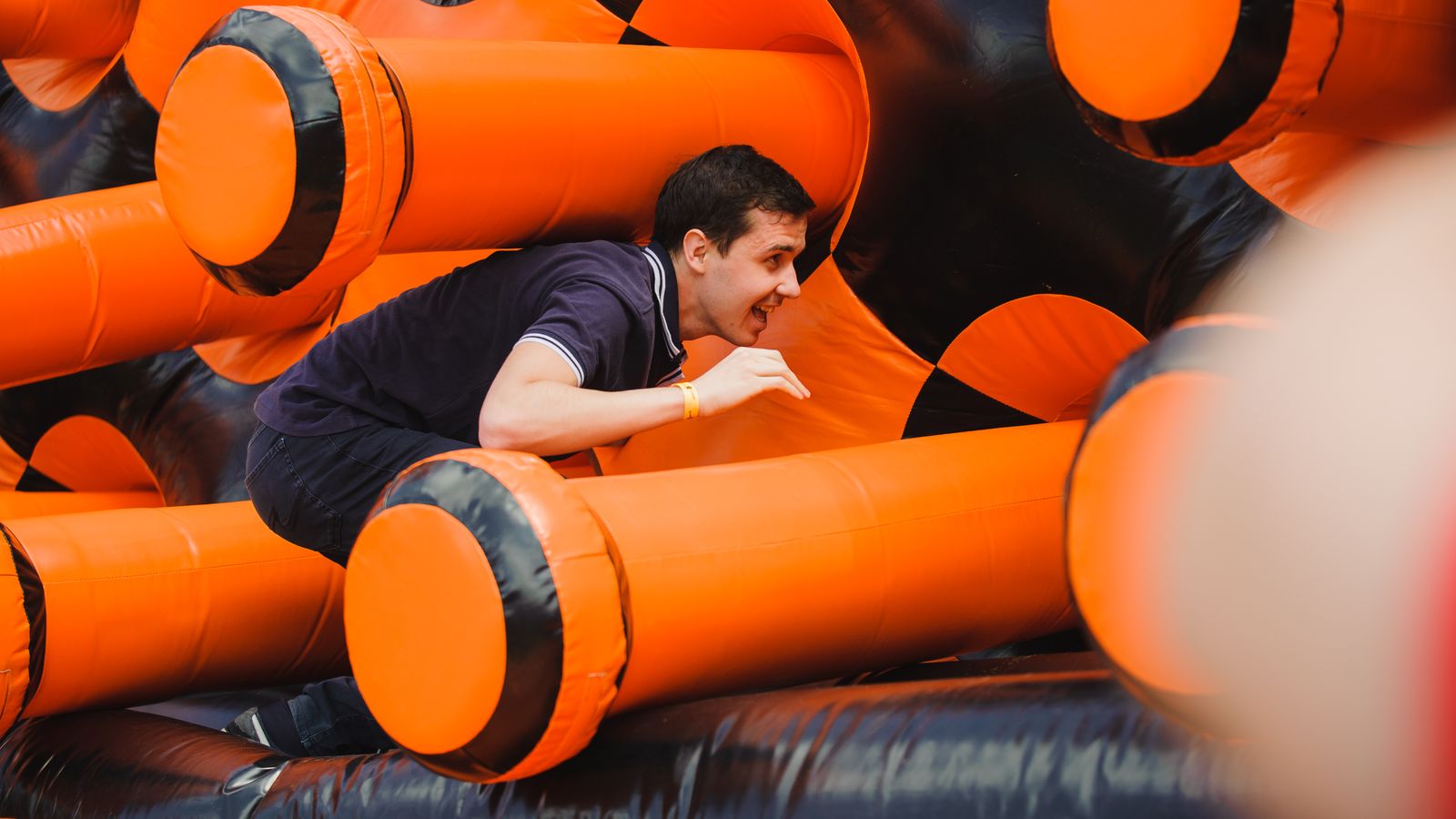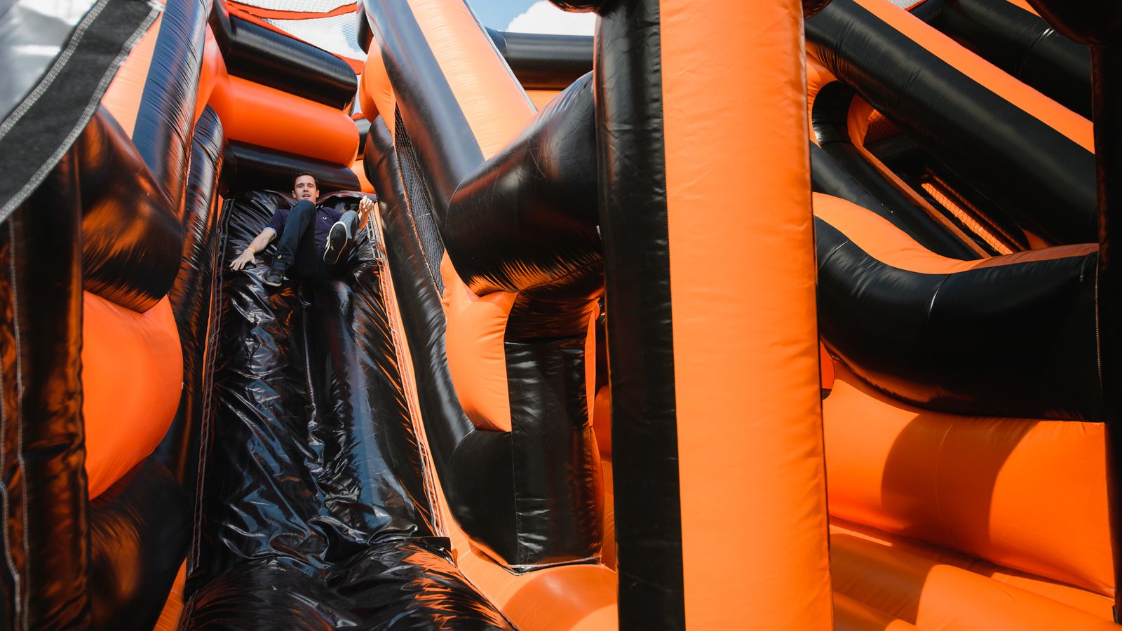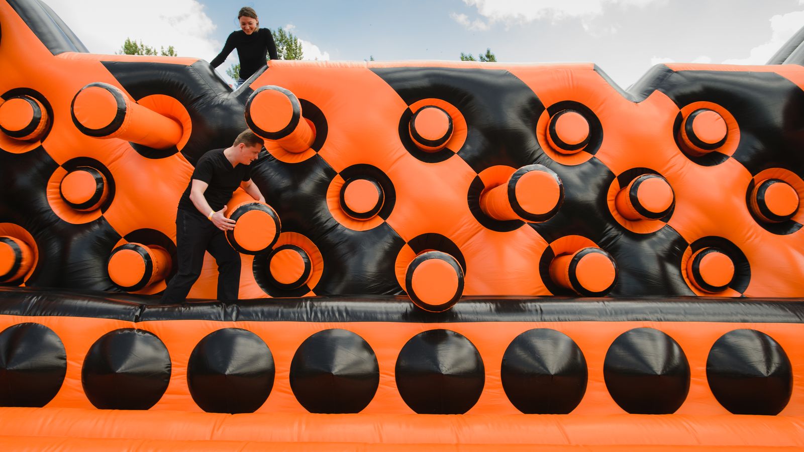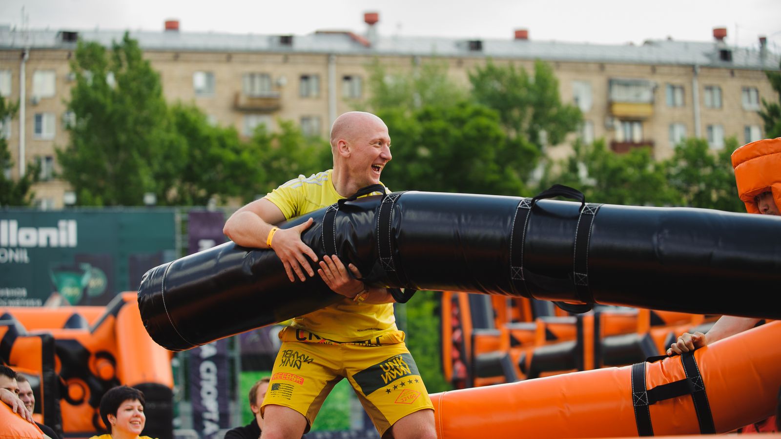Потрясающий спортивный праздник с длинной полосой препятствий подарил участникам море радости и веселья. Яркий фирменный дизайн в черном и оранжевом цветах выглядел очень стильно.