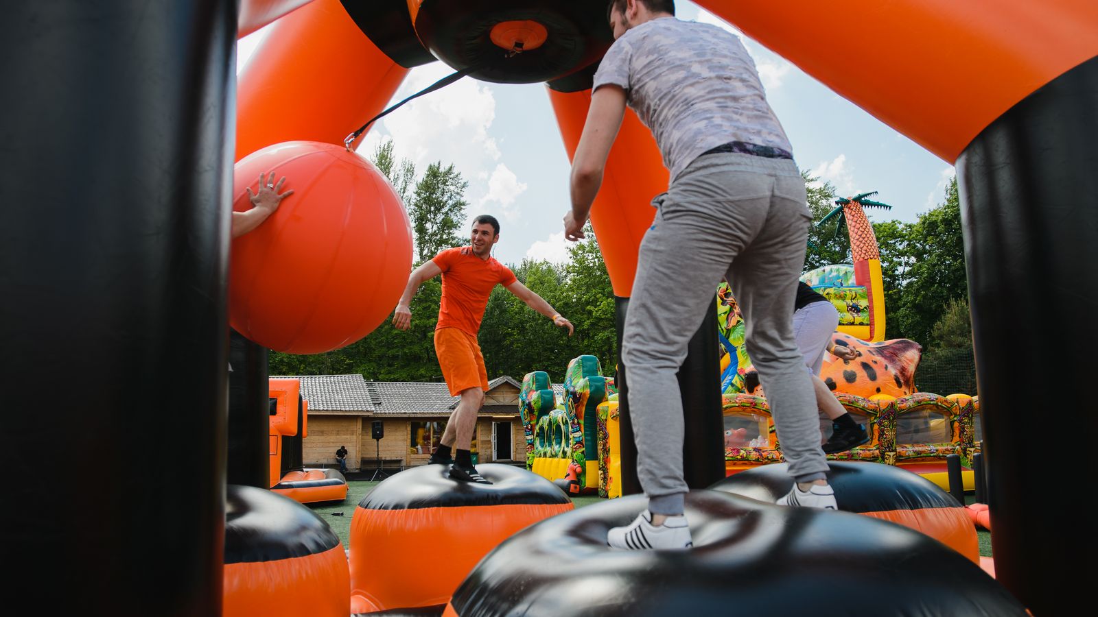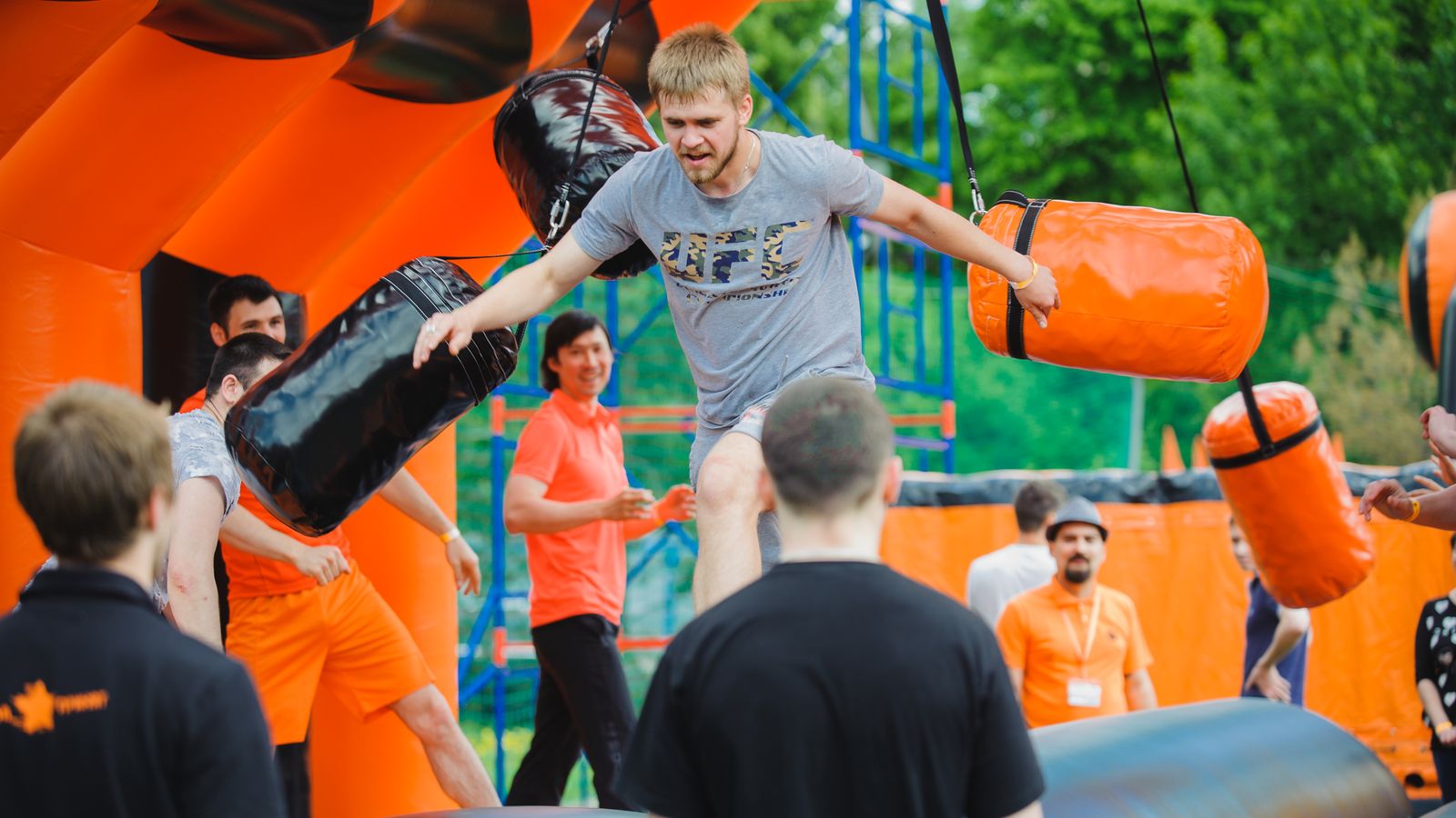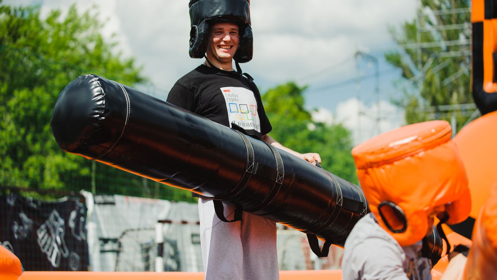 На открытых рингах происходили необычные битвы один на один в надувных костюмах, а также увлекательные скачки на аэро скакунах.