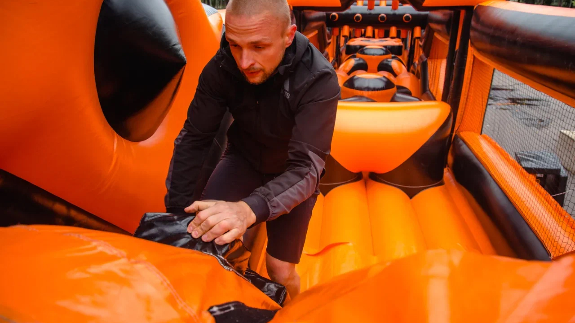 Прохождение трассы занимало несколько минут и доставляло участникам веселье и море смеха. Полоса препятствий надувная и полностью безопасная, так что любое падение не вызывает неприятных ощущений, а процесс увлекательной гонки за победой добавляет куража и вдохновляет на подвиги и свершения.