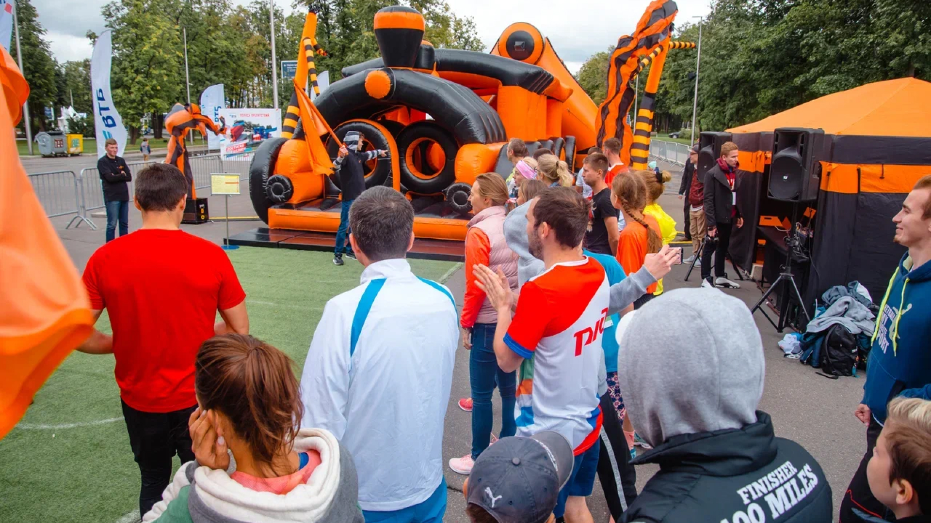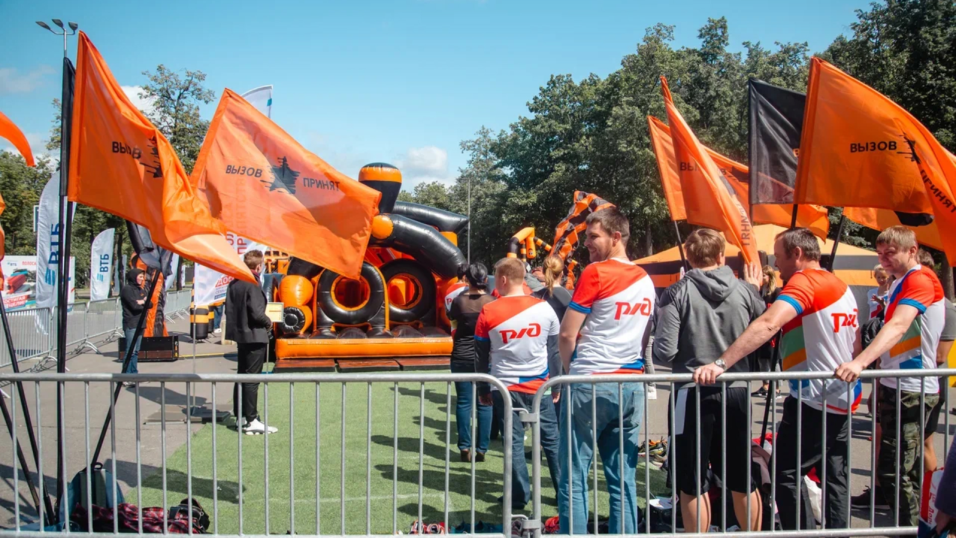 Для прохождения полосы препятствий не требовалось никаких особых навыков и принять участие смогли все желающие. Фирменный черно-оранжевый дизайн аттракционов от «Вызов принят» отлично сочетался с государственной символикой, а также логотипами организаторов, вызывая у гостей и участников праздника чувство гордости и радости.