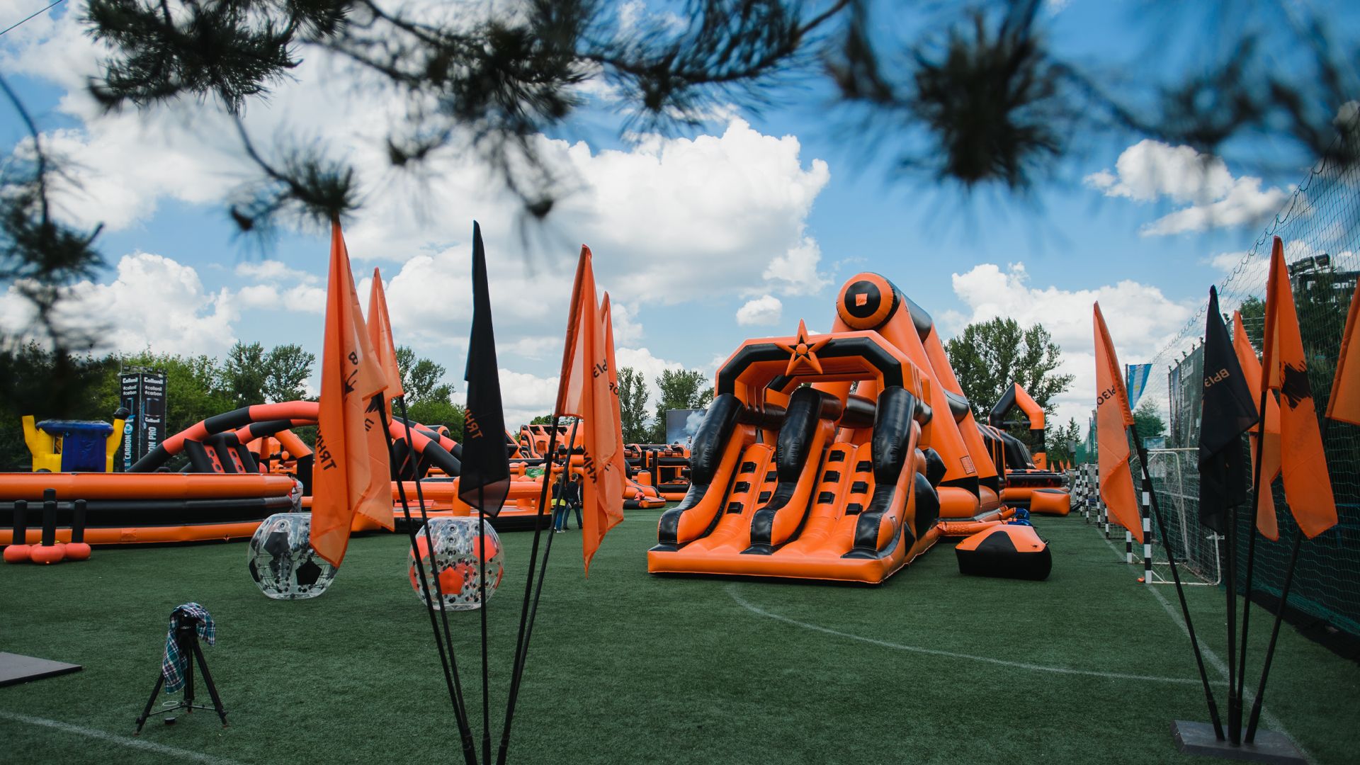 А для тех, кто хочет крутой комплект, но подешевле – в наличие есть надувные чёрно-оранжевые препятствия и их цветные аналоги.