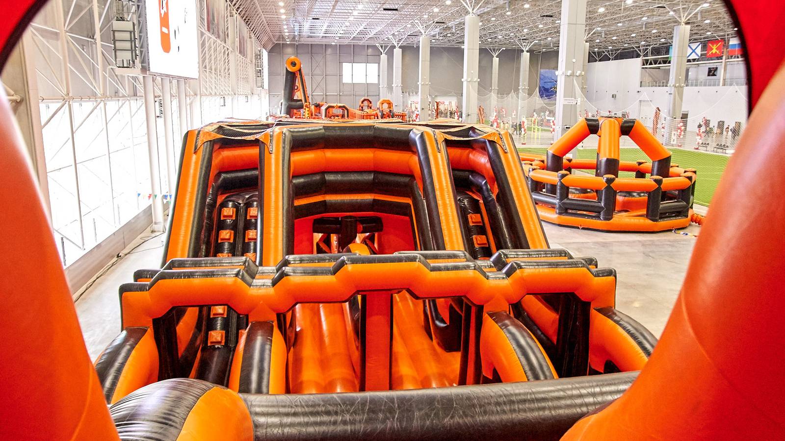 А для тех, кто хочет крутой комплект, но подешевле – в наличие есть надувные чёрно-оранжевые препятствия и их цветные аналоги.