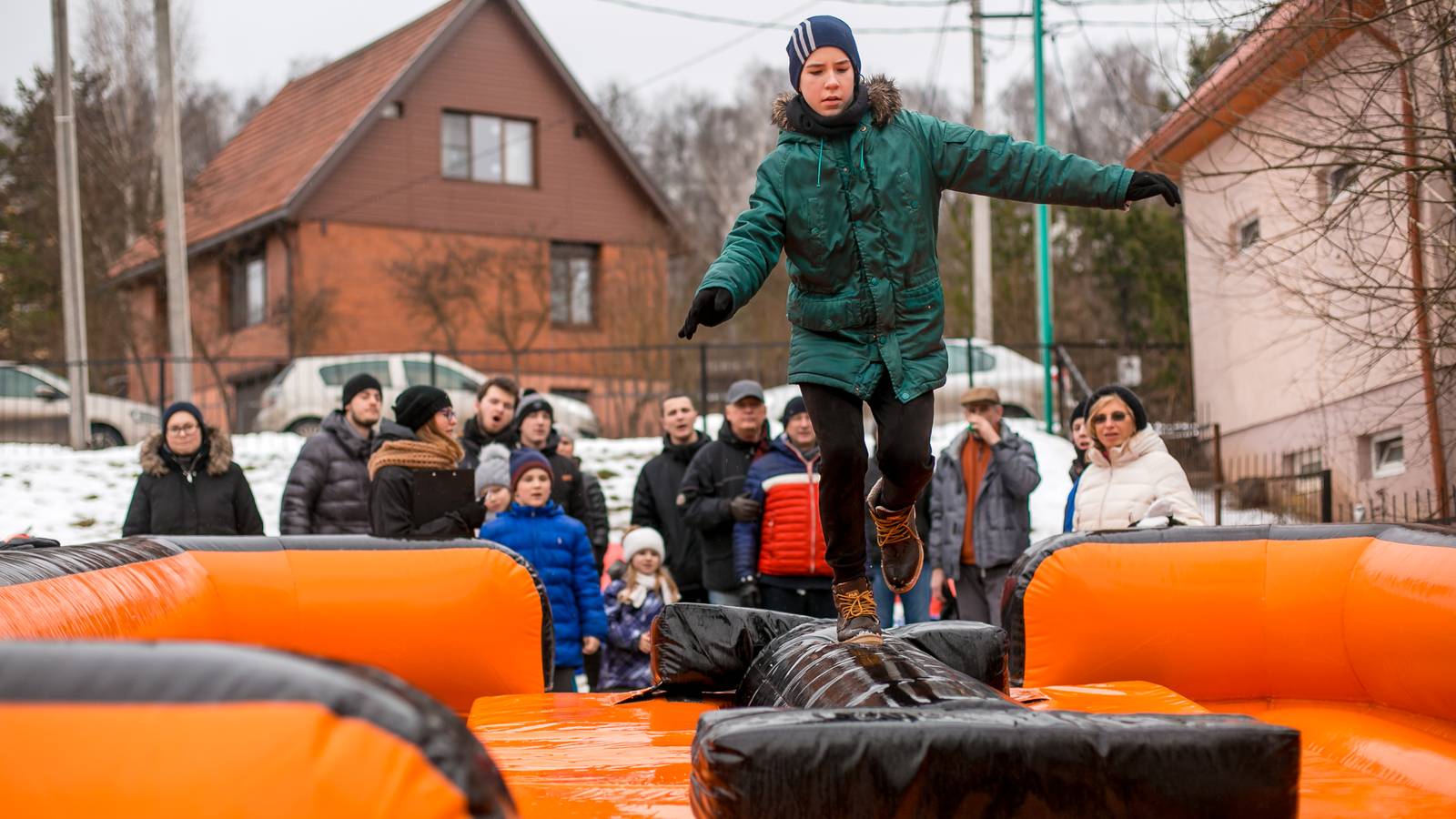 Зима – не время грустить, а самое время принимать участие в веселой забаве. Семейная эстафета прошла в подмосковном Славино. Надувная трасса и спортивные аттракционы от «Вызов принят» стали центральным звеном развлекательной программы. В соревнования участвовали семейные команды с представителями разных поколений.