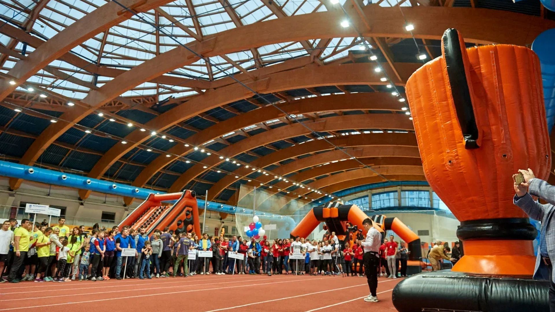– Яркая гонка по надувному батуту